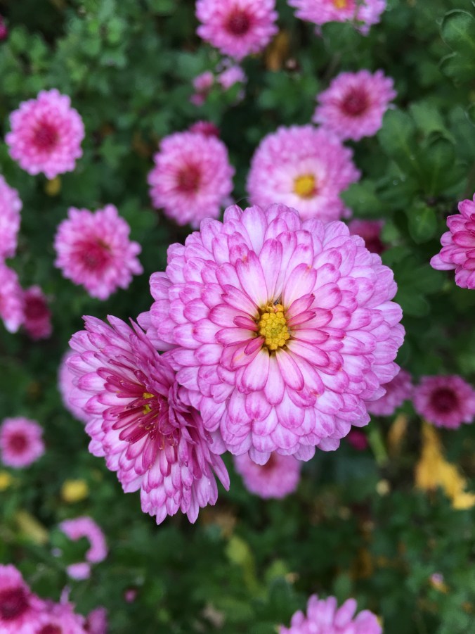 I can’t believe I turned my nose up at chrysanthemums. It might have been the huge Pom Pom flowers that put me off. Some the size of a head. All stiffly growing in rows, marshalled into line by an army of stakes and string.