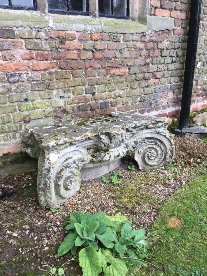 This stonework being used as a bench looks like it came from the top of a Roman pillar. I wonder…..
