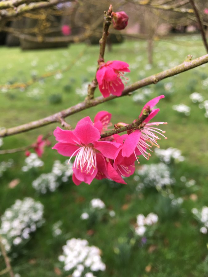We had another walk round the East Garden before heading for home. This Prunus mume Beni-chidori was looking spectacular underplanted with snowdrops. The scent, reminiscent of fruit salad, wafts around the whole garden. Quite strong for such a tiny flower.