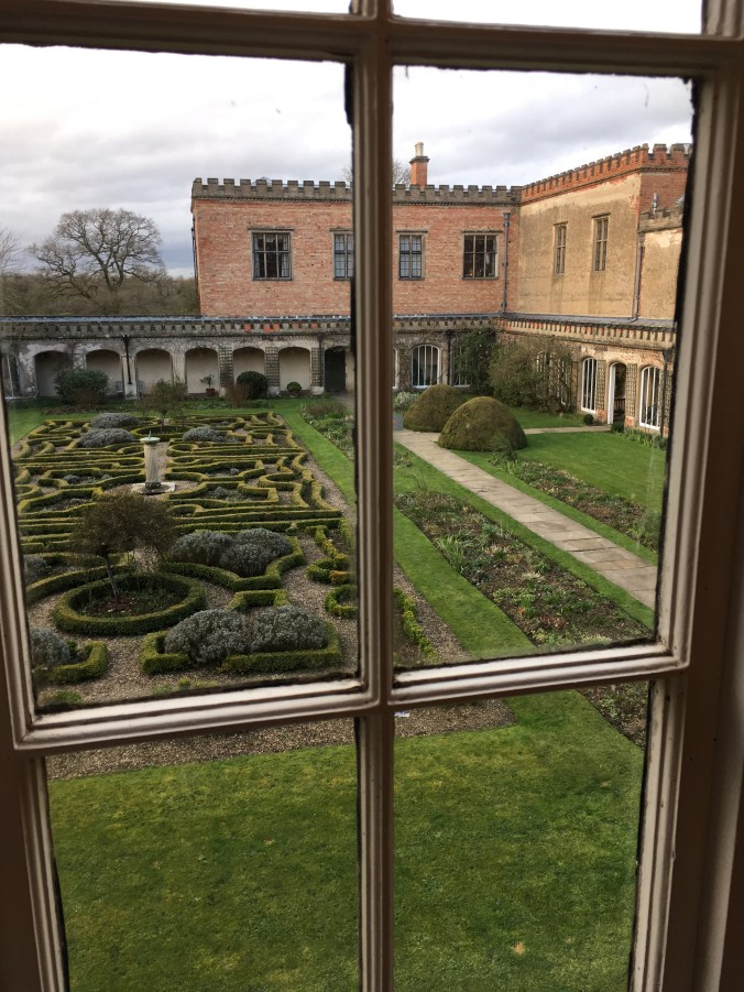 We followed the arrows back to the house and wandered through this doorway, which leads to a pretty enclosed walled courtyard. We bought tickets for a tour around the house which meant we could look through the windows down onto the parterre. Photos can’t be taken in the house, which is understandable. It is a family home, after all. But I asked permission to take photos through the windows, which was allowed.