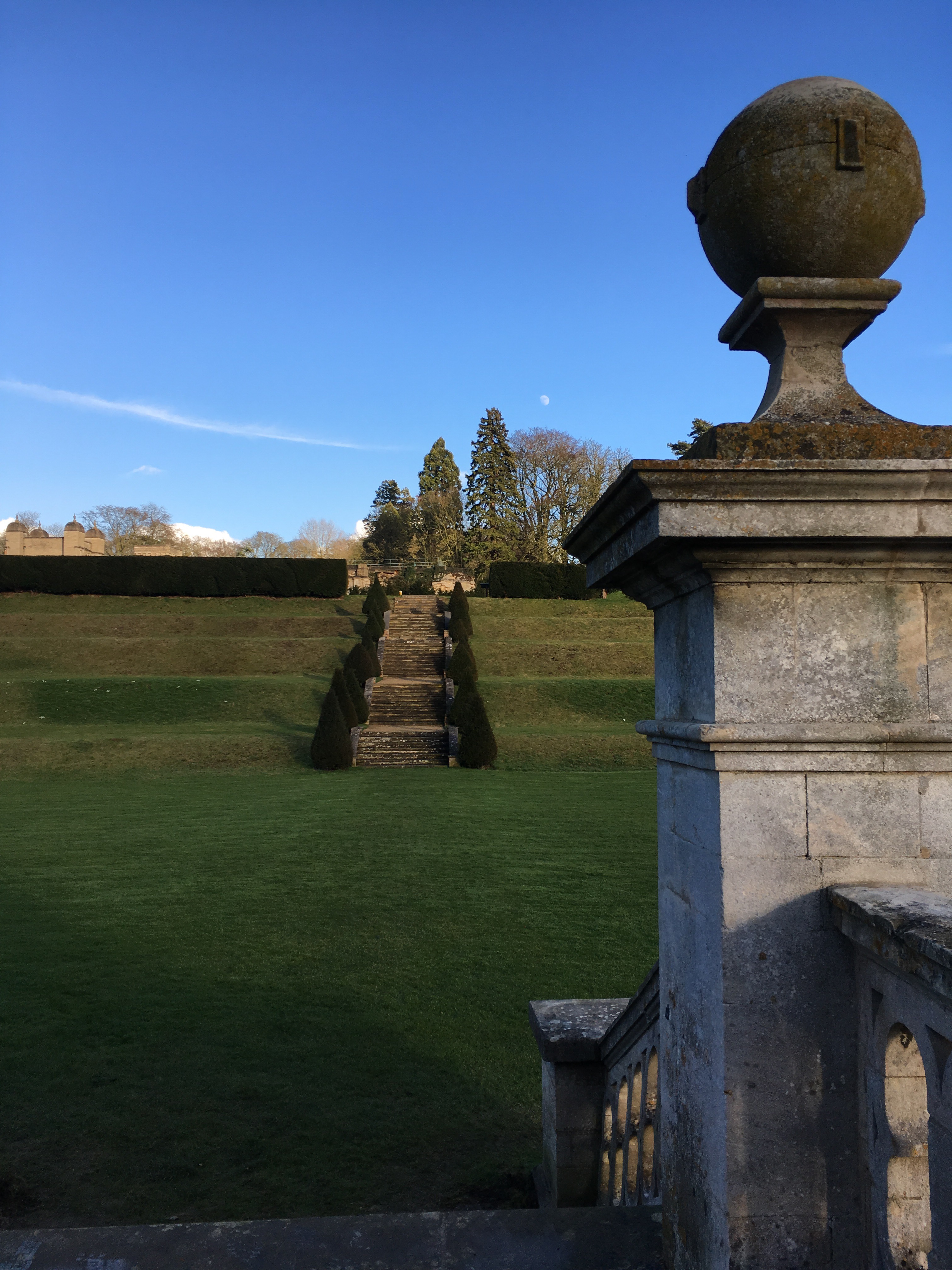 We followed the arrows back to the house and wandered through this doorway, which leads to a pretty enclosed walled courtyard. We bought tickets for a tour around the house which meant we could look through the windows down onto the parterre. Photos can’t be taken in the house, which is understandable. It is a family home, after all. But I asked permission to take photos through the windows, which was allowed.