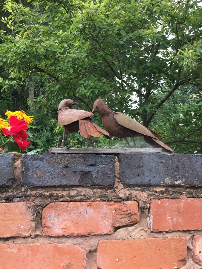 These two birds on top of the garden wall made us laugh. Are they pigeons or crows? We couldn't decide. Just about everything in the garden sparks a debate. It's all a talking point.