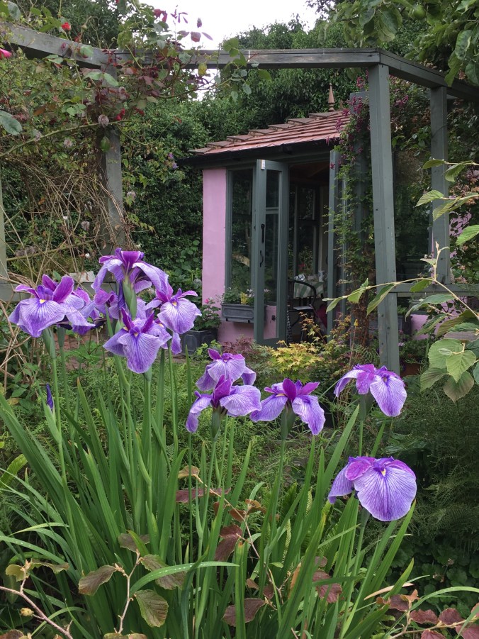And finally, after much backtracking and going round the garden several times to make sure we hadn't missed anything, we found the terrace in front of the garden room that Cathy describes as her sitooterie.