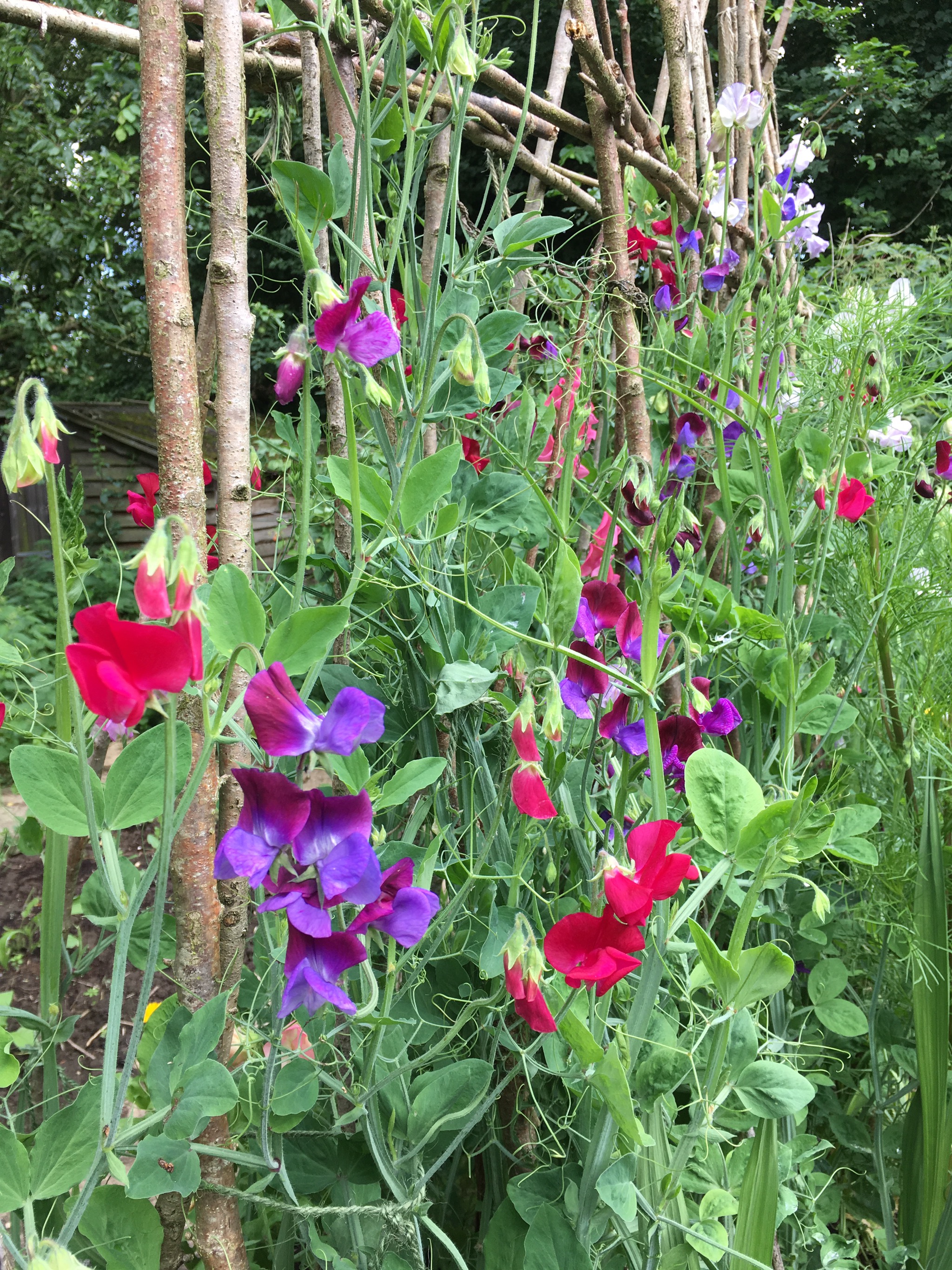 I might copy this idea on my cut flower and veg plot. The plant supports would also be a good idea to hold up the netting over the cabbages etc.