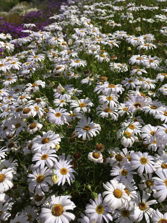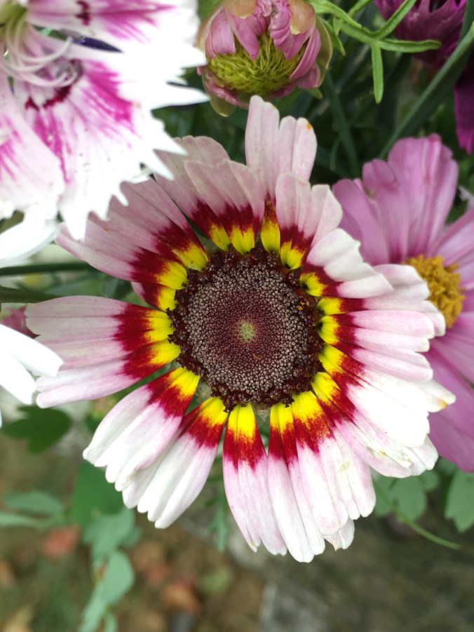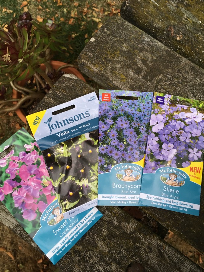 Chrysanthemum Rainbow Mixed- from Mr Fothergill’s – were sown in March, planted out at the end of May, and flower right through June to October. Seeds cost £1.75 a packet. I’m always looking for good value for money and these fit the bill.