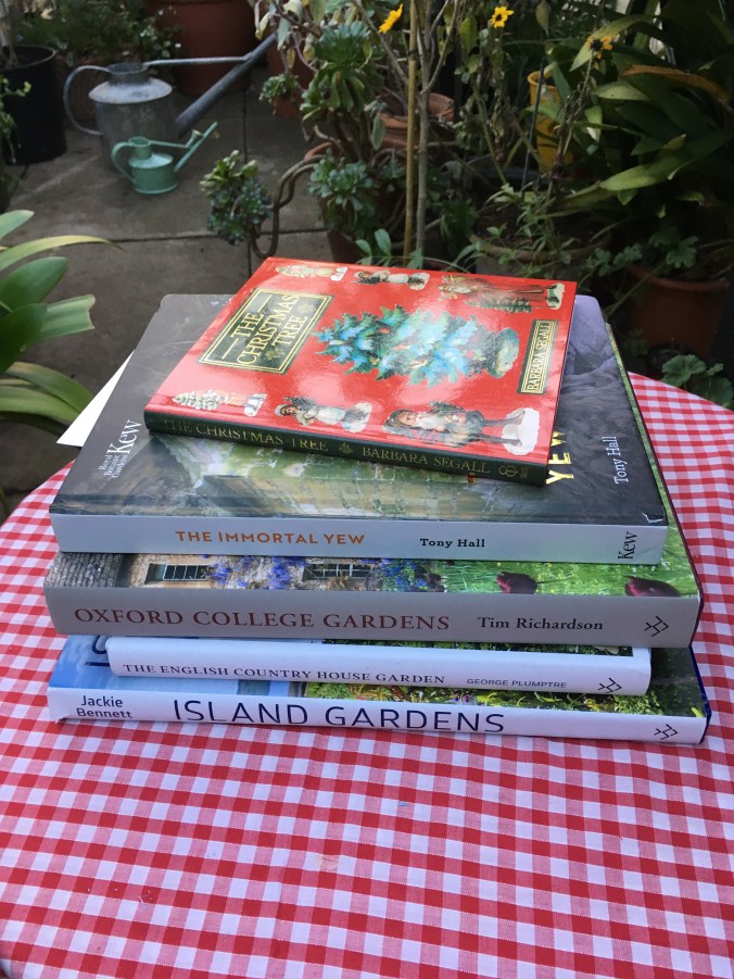 One of the pleasures of writing a blog is sharing a love of gardening with like-minded people. Books are also a passion of mine, particularly anything with a horticultural theme. So I was happy to be invited to write a review of The Immortal Yew, written by Kew Gardens manager Tony Hall. Stories of myths and legends surrounding yews dating back 2,000 years had me glued to the pages from start to finish. I was drawn in by the sight of the “lion’s paw” yews flanking the doors at St Edward’s Church, Stow-on-the-wold, a sight said to have inspired JRR Tolkien when he was writing about the gateway to Moria in Lord of the Rings. A photo of these strange, ancient yews provides the cover picture for the book. The publishers, Kew Publishing, very generously offered three copies for a prize draw on the blog. The winners, randomly selected, are Sharon Moncur, Philippa Burrough and Alison Levey. Thanks to everyone who left comments on the blog. If you didn’t win, please keep reading as there are many more books to follow over the next few weeks, including The Wild Remedy by Emma Mitchell, Island Gardens by Jackie Bennett, the English Country House Garden, George Plumptre, Oxford College Gardens, Tim Richardson, and The Christmas Tree by Barbara Segall. Winter is a great time to catch up with reading, before tasks in the garden entice us outdoors again.