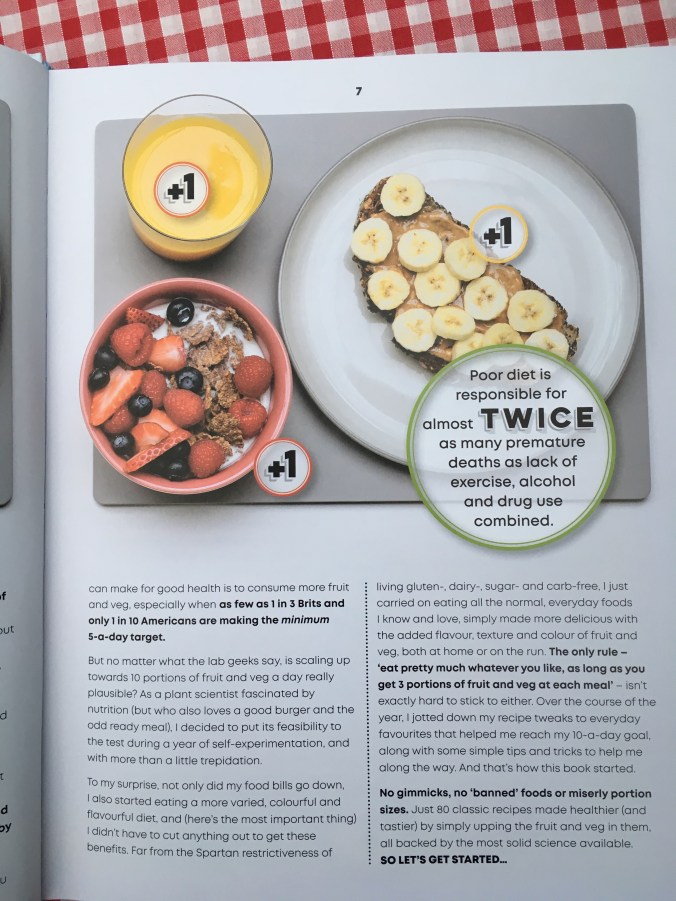 Here are a few sample pages from the book. First there’s an explanation on the science behind 10- a day. There’s no doubt that eating more fruit and veg is good for us. The book is split into sections on breakfast, lunch, dinner, deserts, snacks, sauces, cakes and bakes.