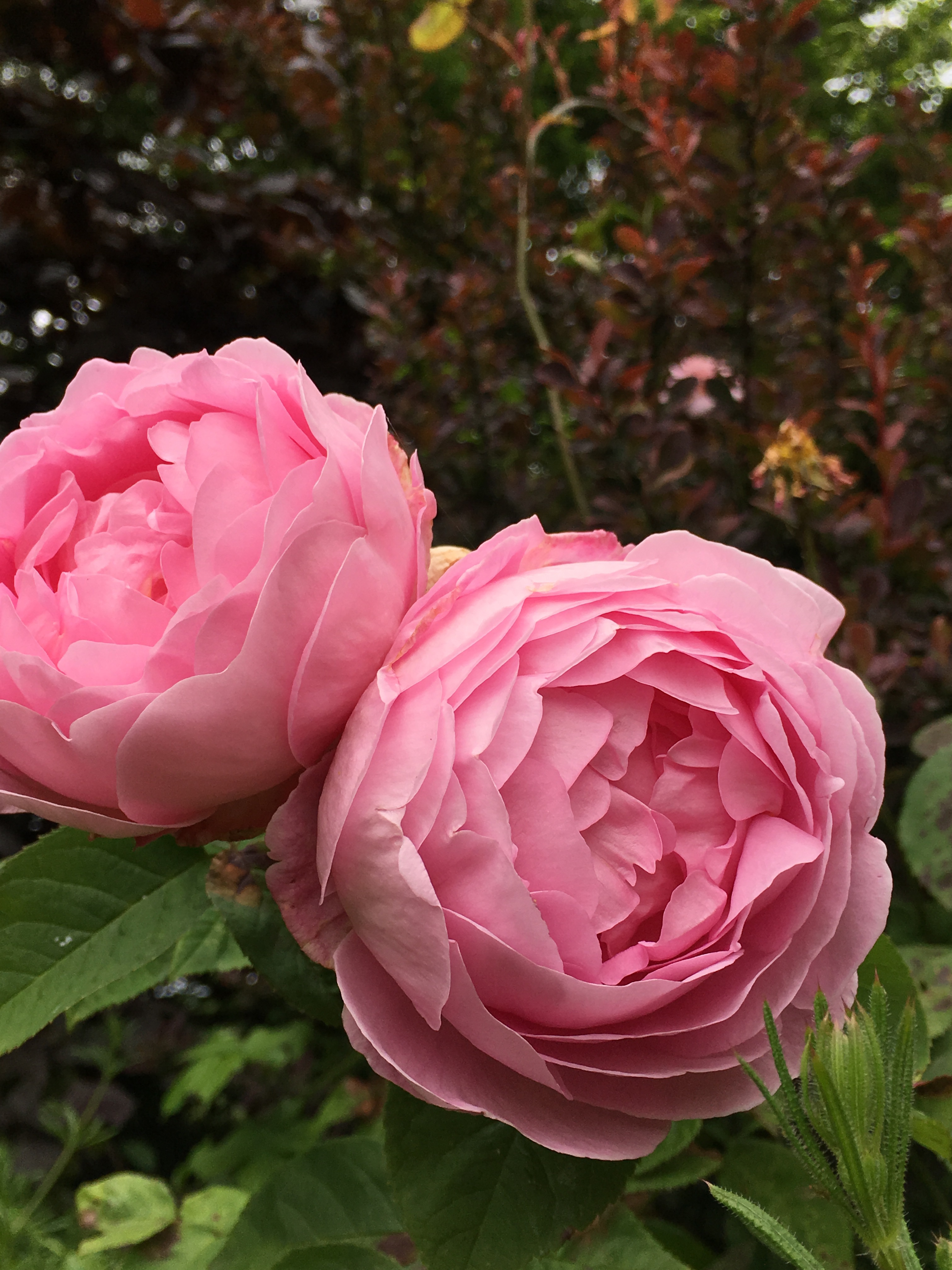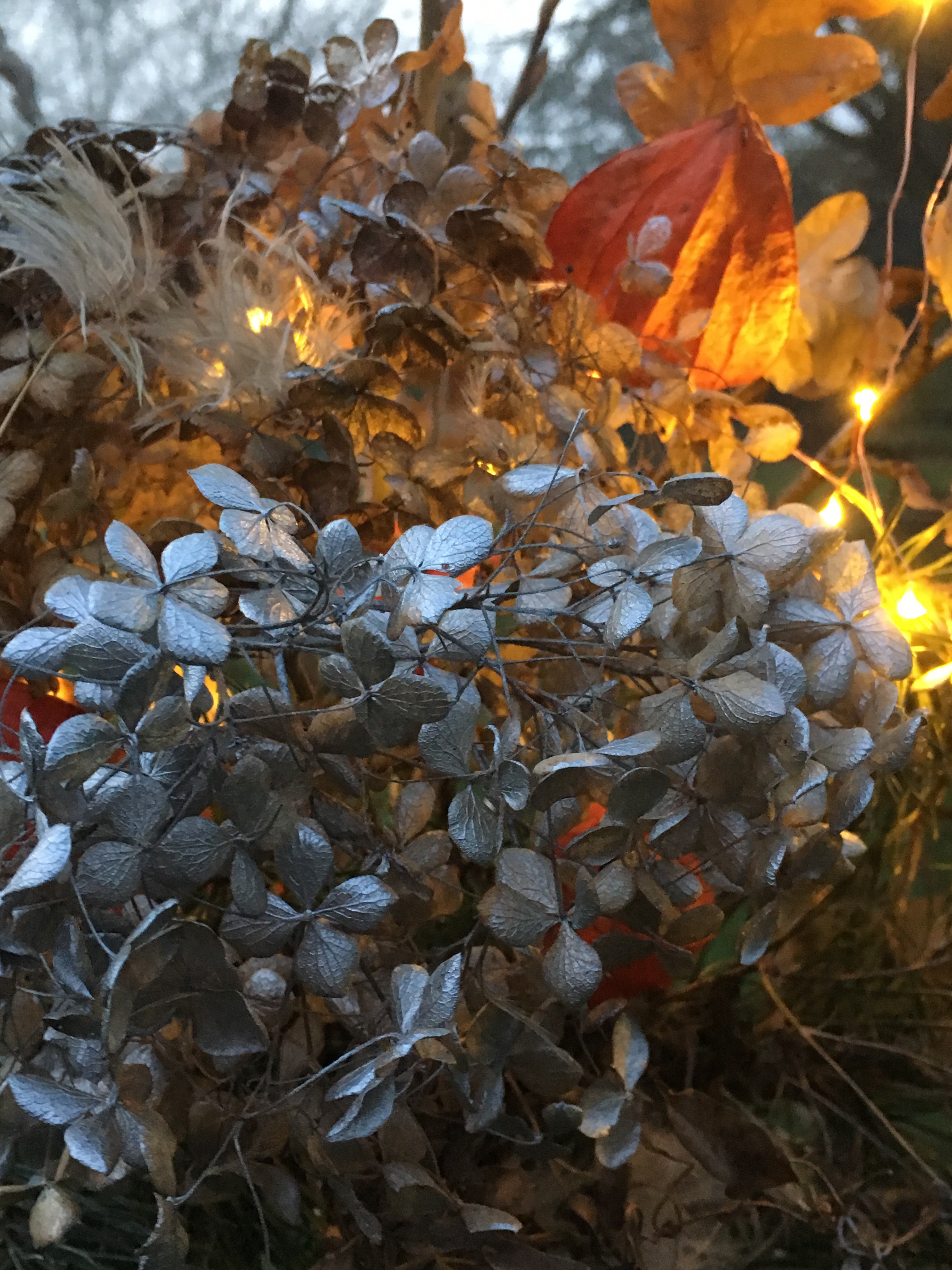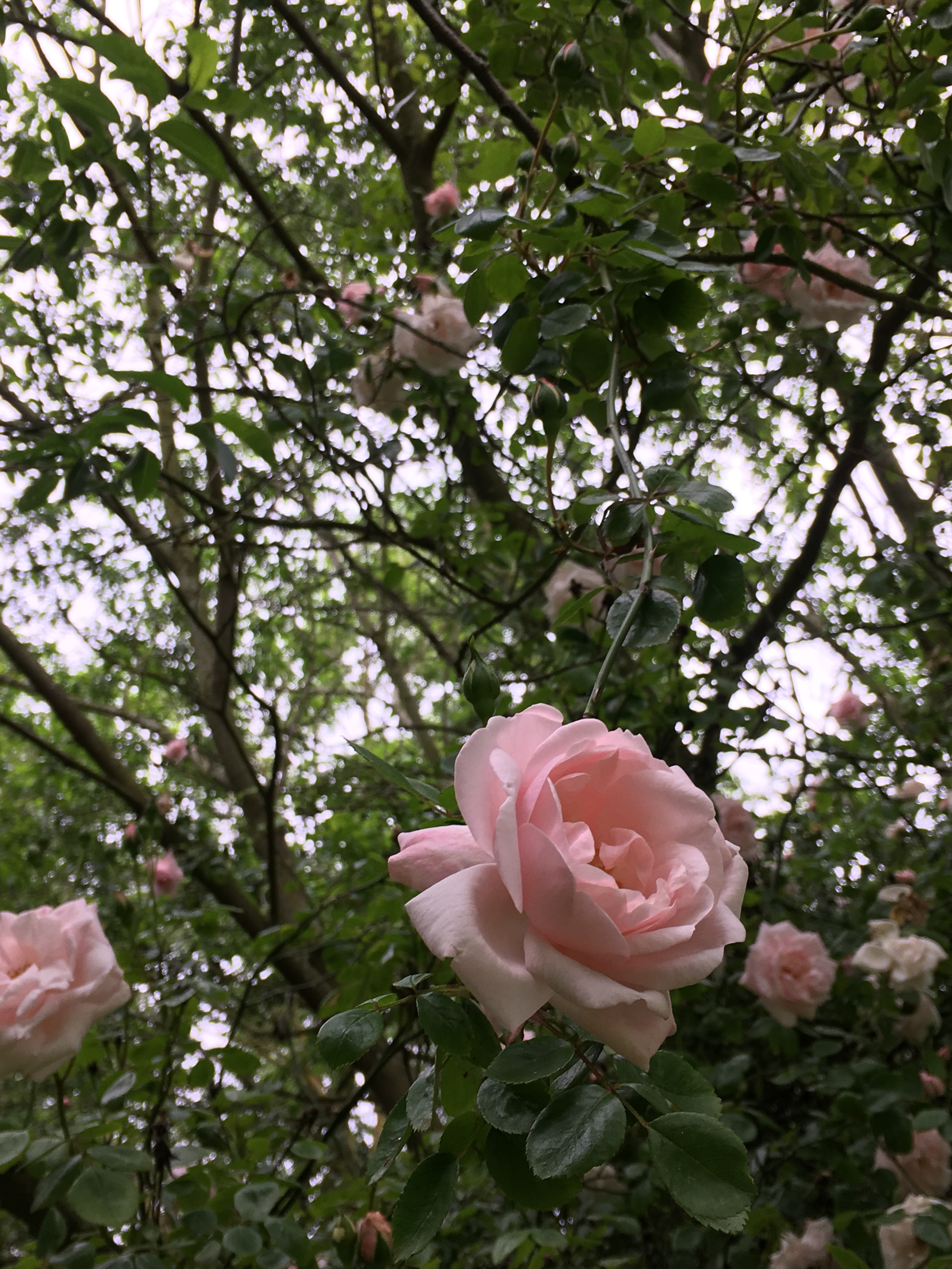 Here’s a view of the garden today. The hawthorn hedge looks like seafoam in the wind. Looks like there will be more rain, judging by the colour of that sky.