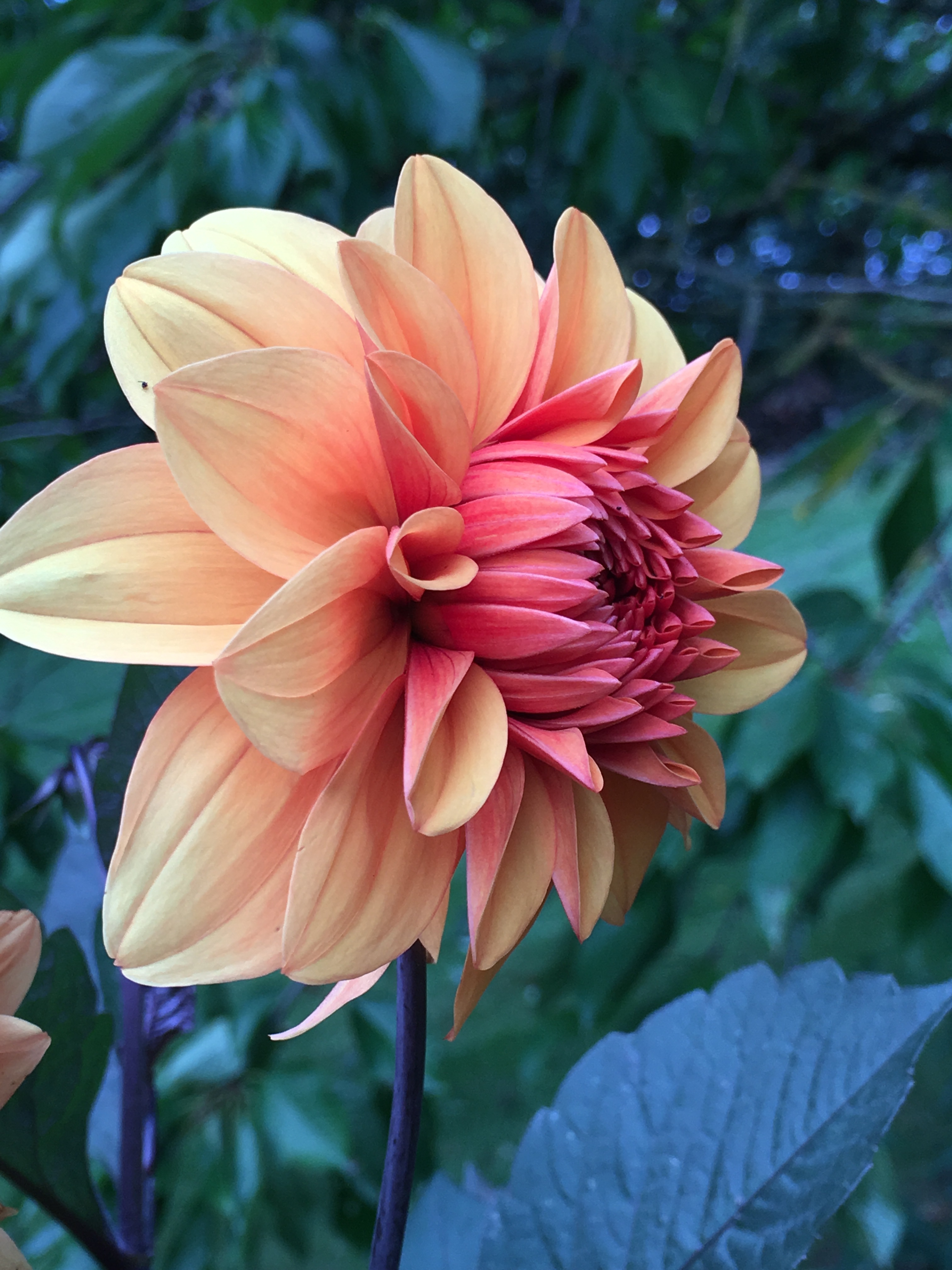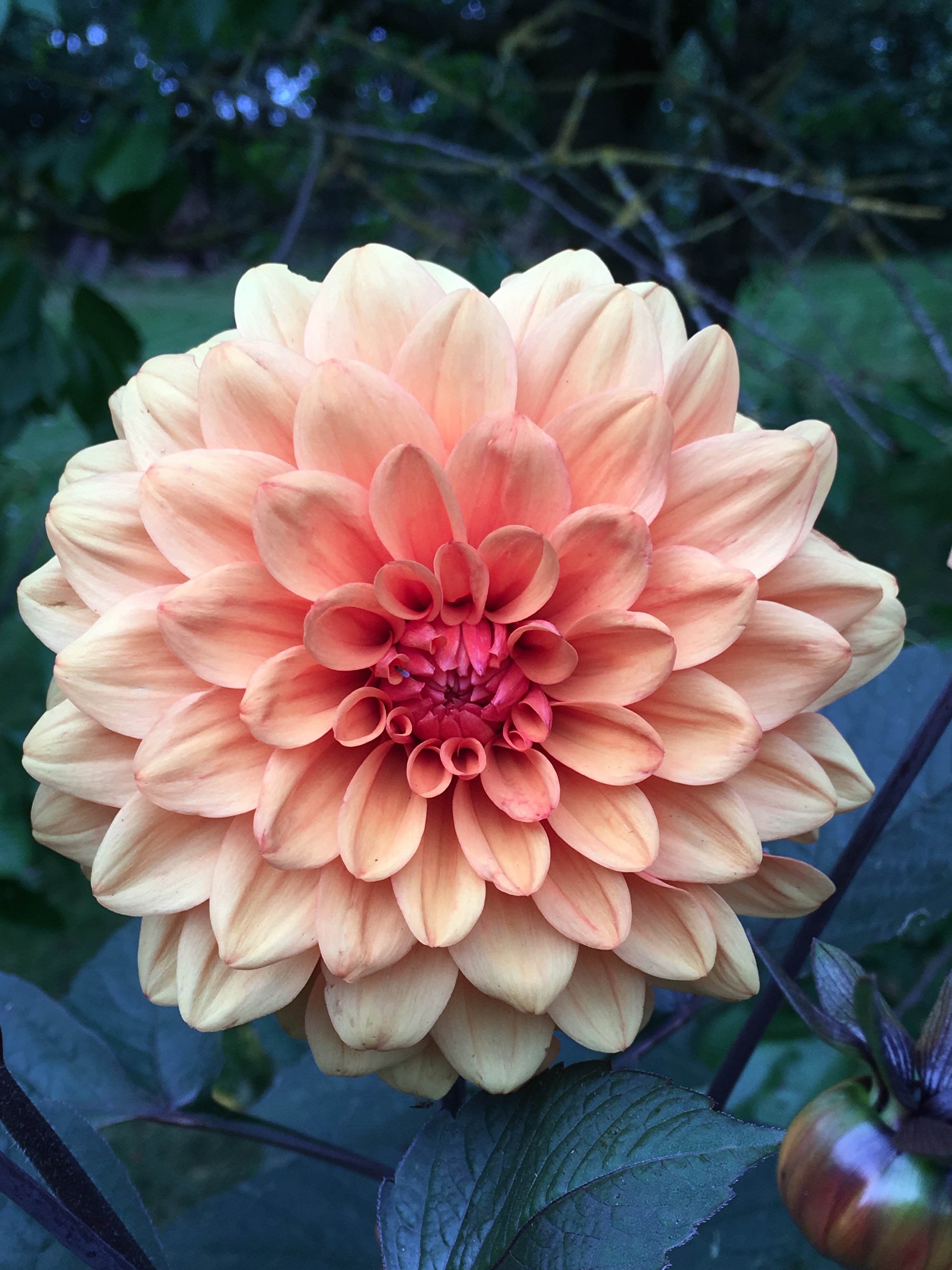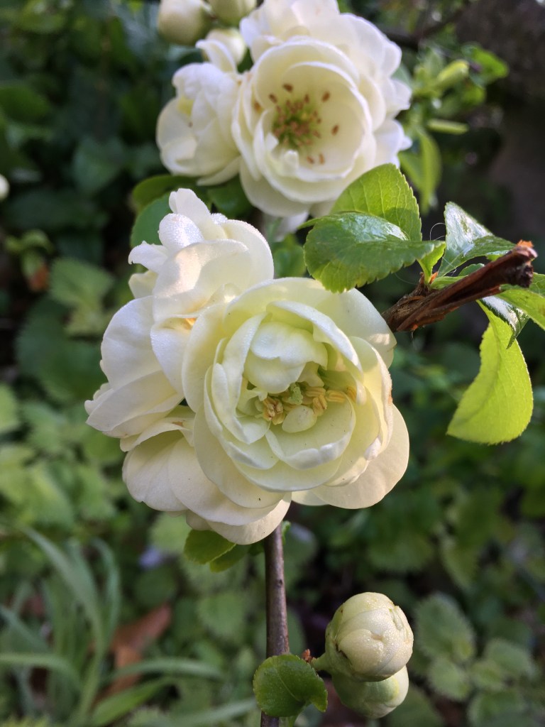 Here’s a view of the garden today. The hawthorn hedge looks like seafoam in the wind. Looks like there will be more rain, judging by the colour of that sky.