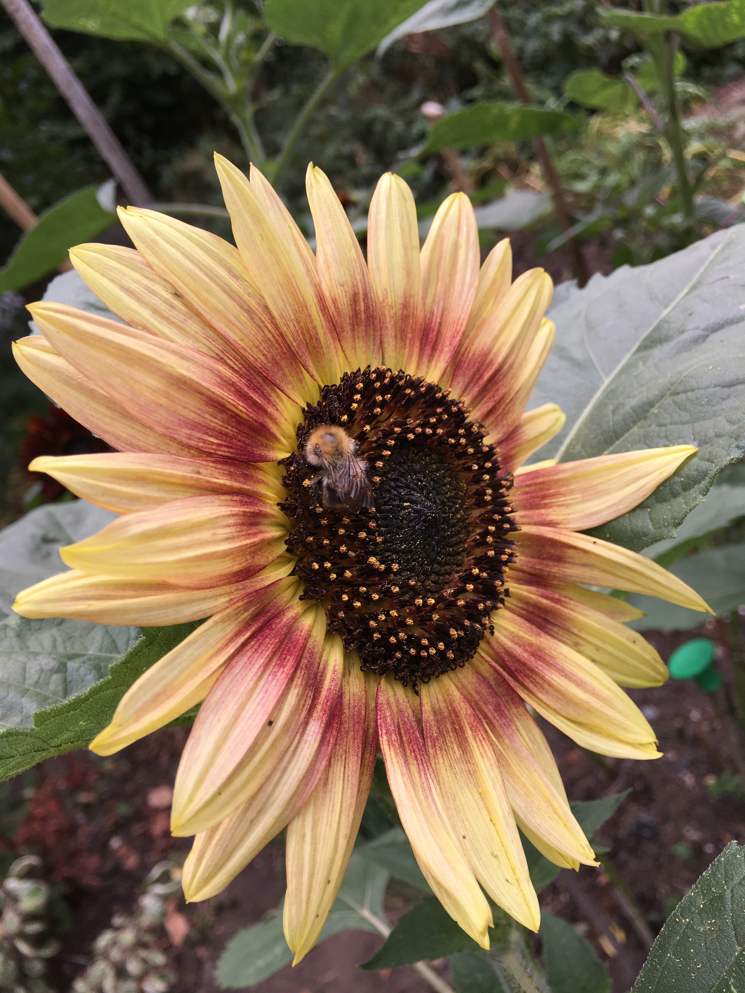 Sunflowers can be sown in April and May. Earth Walker and Velvet Queen are good varieties. Look out for the multi-headed dwarf sunflowers. I grow mine amongst the sweetcorn and the vegetables help to hold the sunflowers upright in stormy weather. Calendulas and courgettes are grown at the base.