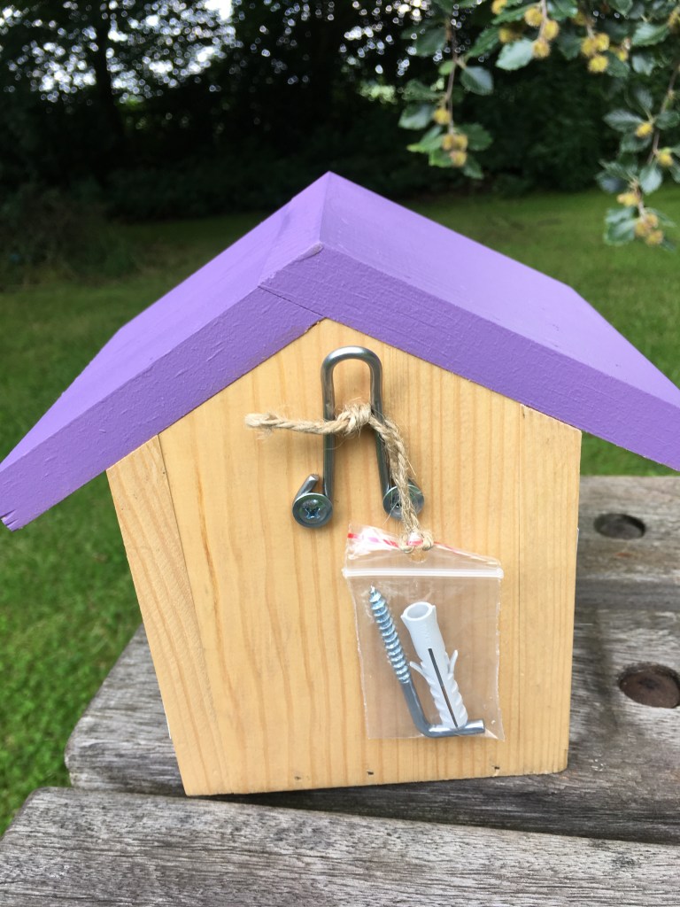 The butterfly house has a hook on the back and a screw and rawl plug for hanging it up.