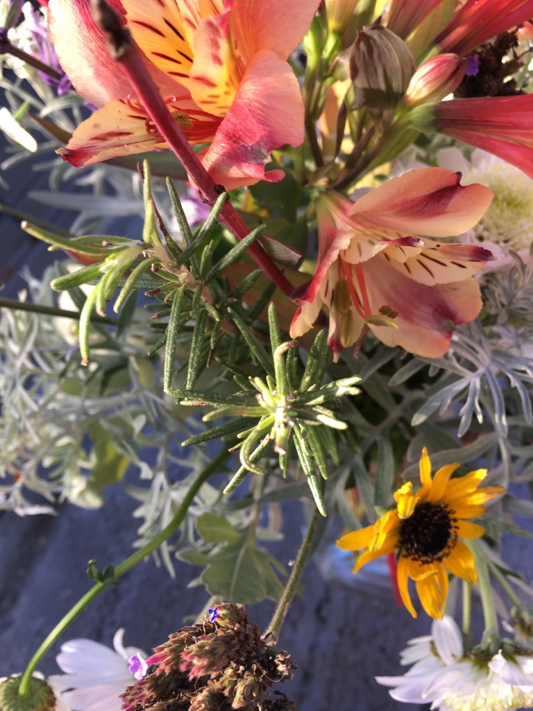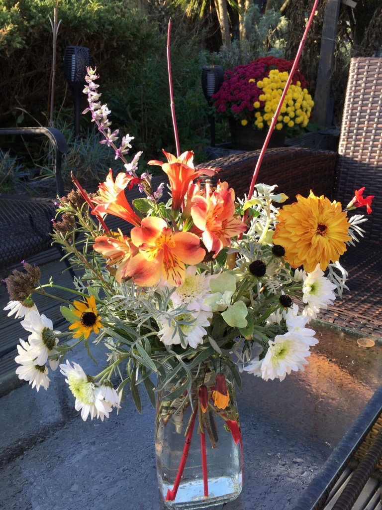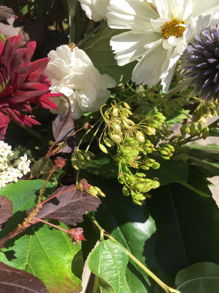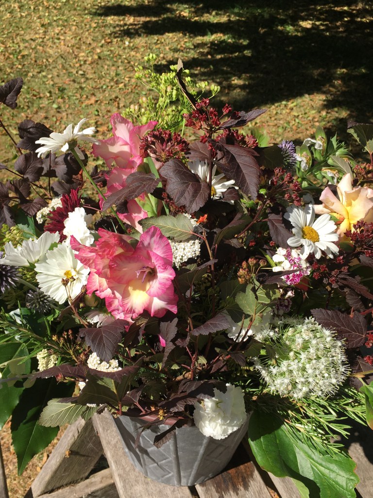Rudbeckias, calendula and green seed heads from Ammi majus