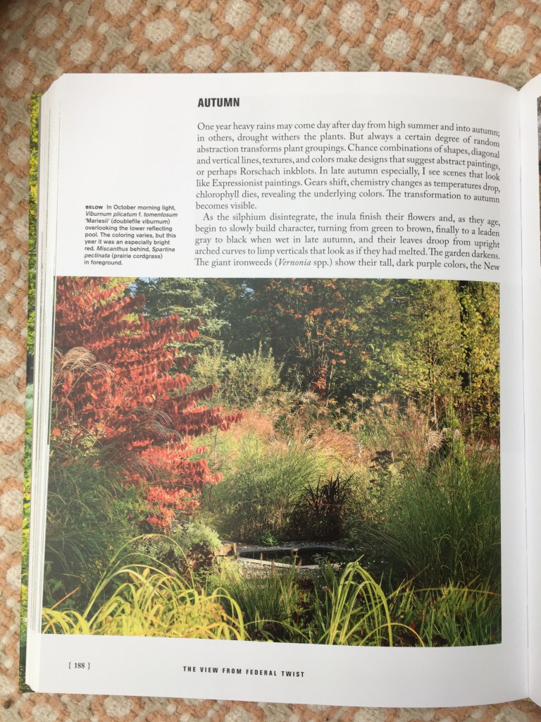 Later, he writes “…my life and emotions are closely bound with this place I call my garden. I understand physics well enough to know that my physical body intersects with the garden, interacts with the garden, responds to the garden in some kind of mutual way. I ‘live’ the garden every day. I am Federal Twist.”