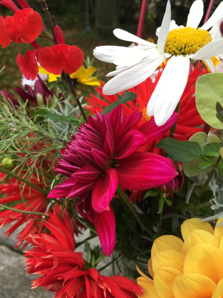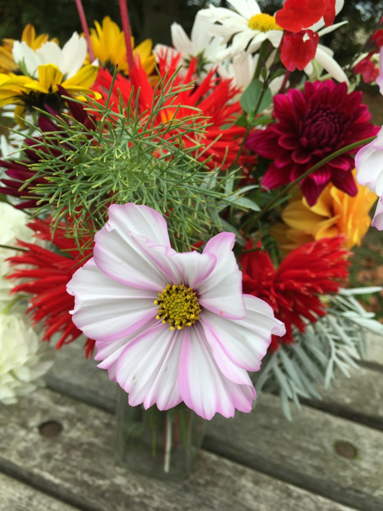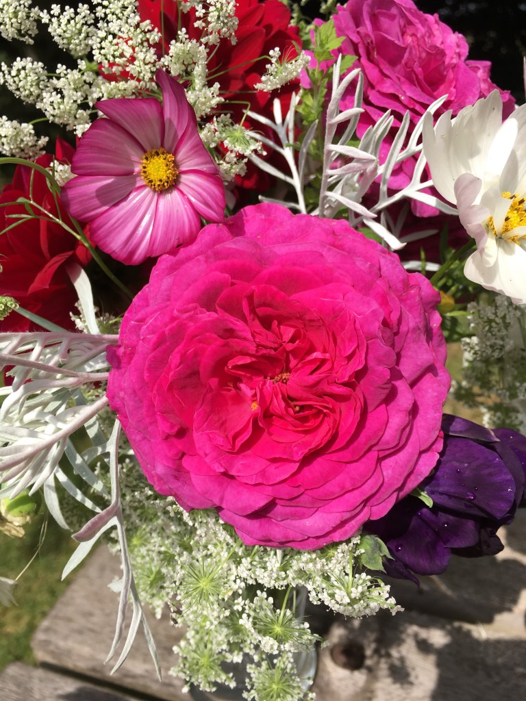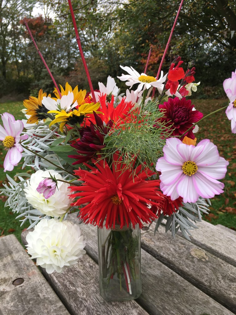 I don’t think I’ve ever been so happy as I was this weekend wandering around my plot choosing flowers for Joan. It’s been such a sad time not being able to visit, or send flowers. I started growing cut flowers when Joan began showing signs of vascular dementia. Flowers have always been our special connection. We loved arranging them together. I realised she would one day forget who I was, but hoped the flowers would always remind her of me. And for many years it worked. Even when she forgot my name I was ‘someone who brought flowers.’ While she was still in her own home, I took armfuls of flowers- one of everything in flower- and foliage as well, to give a flavour of what was growing in my garden. I didn’t make them into arrangements, they were just loosely tied with string. Then Joan would spend the day creating her own posies, selecting vases and deciding where to place them- one in the front window to cheer up passers-by, one on the hall table to welcome carers who came twice a day, a few vases for the fireplace. We sat and surveyed her work, ate home-made cake, sipped tea and marvelled at the beauty of flowers, noting all the different colours and shapes. I included lavender, mint and rosemary for scent and the memories they evoked. Joan remembered a lavender bed at her childhood home and the Sunday meals with mint sauce and rosemary. It’s strange how childhood memories are the last to fade. We talked for hours about the flowers, fruit and vegetables her father grew. They had bee hives at the bottom of the garden, and the taste of honey took her right back to those happy times. There have been many heartbreaking moments, but one I particularly remember is Joan thinking her father was just upstairs. I had the choice of going along with it, or telling Joan her father had died many years ago. Neither was an easy choice, and whatever I said, five minutes later, we’d have to go through the same conversation. Flowers were a welcome distraction and something we could both agree on. Eventually, Joan lost the ability to arrange her own flowers. I did them for her and raged at the disease for stealing something that Joan so much enjoyed. Dementia, bit by bit, destroys all happiness as the processes for even the smallest task are completely forgotten. And people too, are forgotten, even those who’ve been very close and much loved. It’s so sad to watch someone desperately fighting to hold on to names and relationships. Joan would say, “I know you are someone dear to me, but tell me who you are and who am I to you.” When Joan moved to the care home, I continued the tradition with the flowers. But the pandemic meant the home was locked down for almost all of last year. Leicester remained in lockdown when other cities were released from restrictions. There were 16 deaths at Joan’s care home. Just a few weeks ago we were all set to visit when the home was locked down again due to another covid outbreak. This weekend the all clear was given and we were allowed in, and here’s some of the flowers I took with me.
