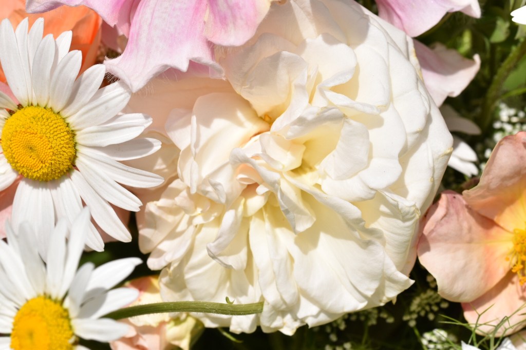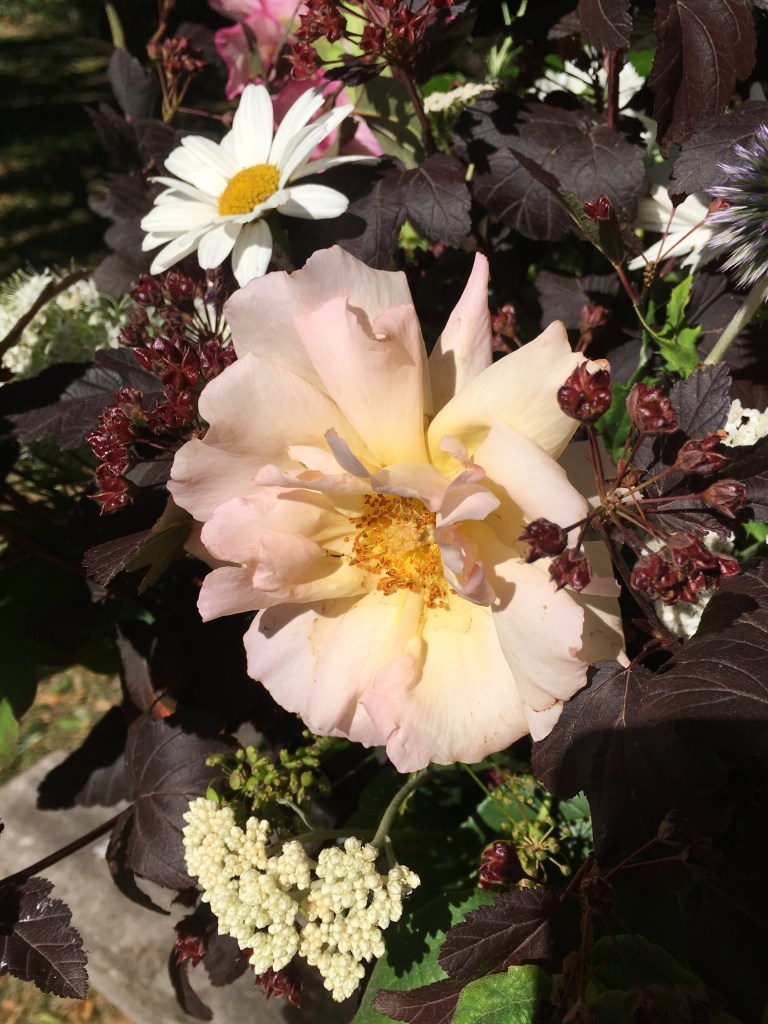 Argyranthemums with ammi, verbascum and rudbeckias.