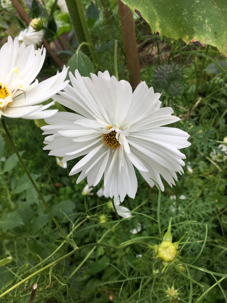 Cosmos Psyche White. Ruffled, semi-double flowers. Grows to 1.2m and flowers from June to October.
