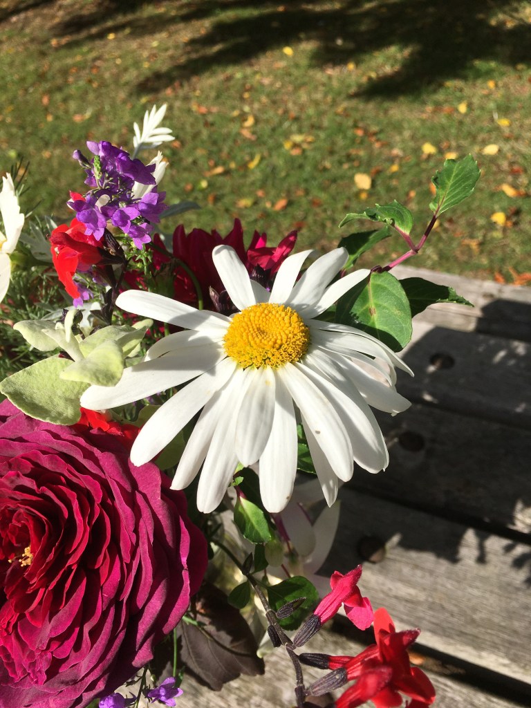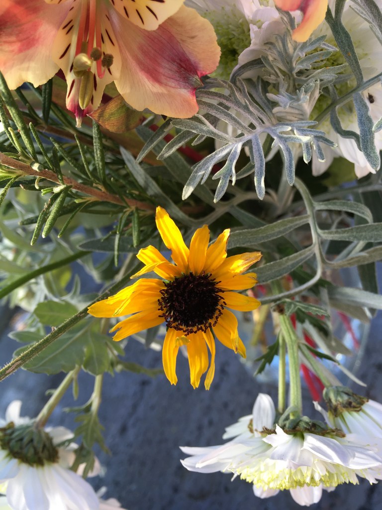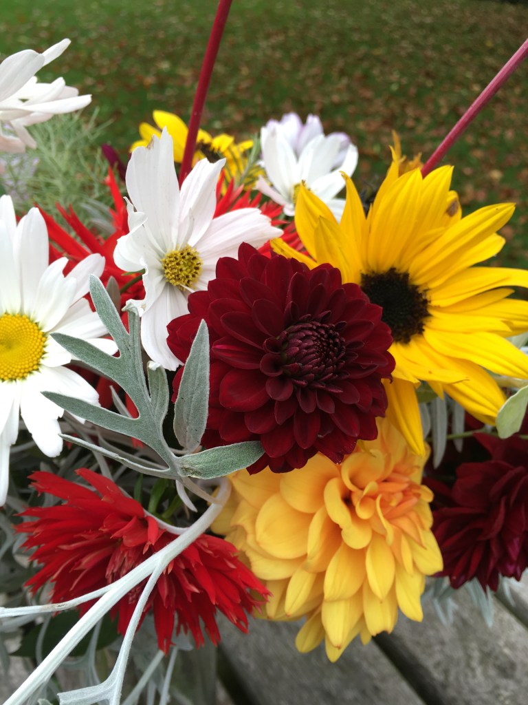 Joan loves sunflowers, but they aren’t quite ready in my garden yet. These rudbeckias grown from a mixed packet of seed look just as bright and cheerful.