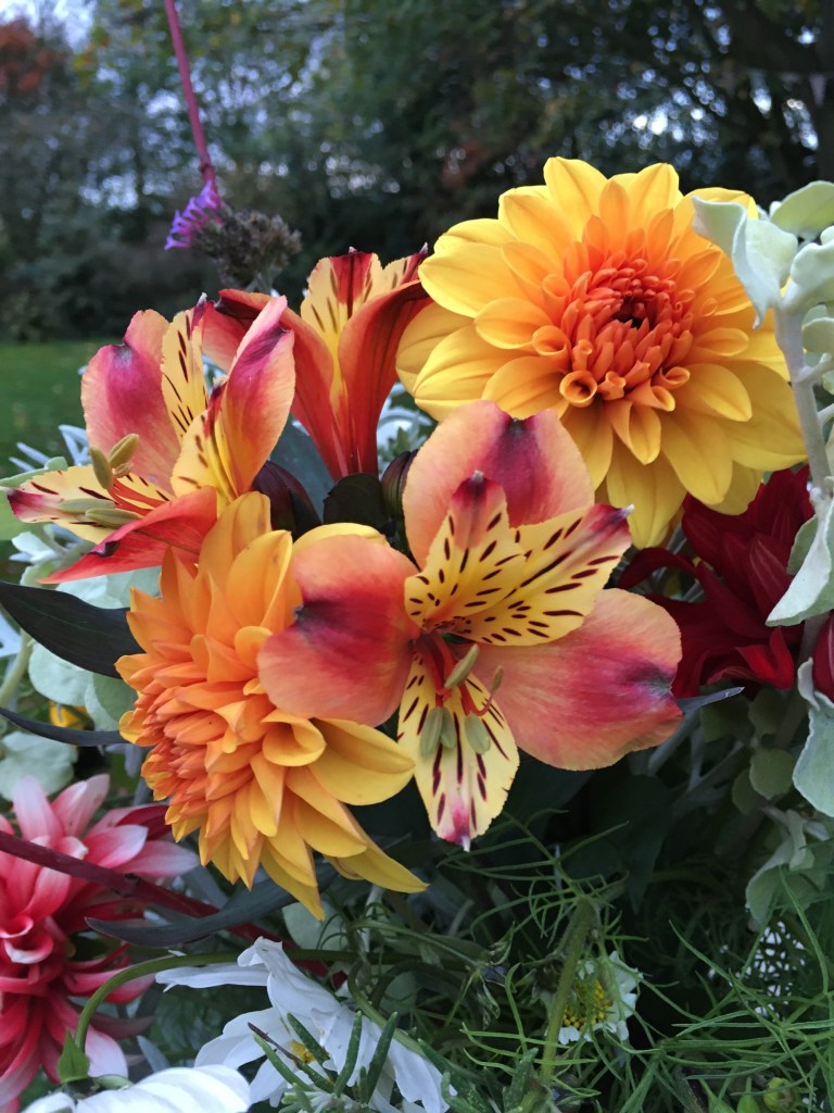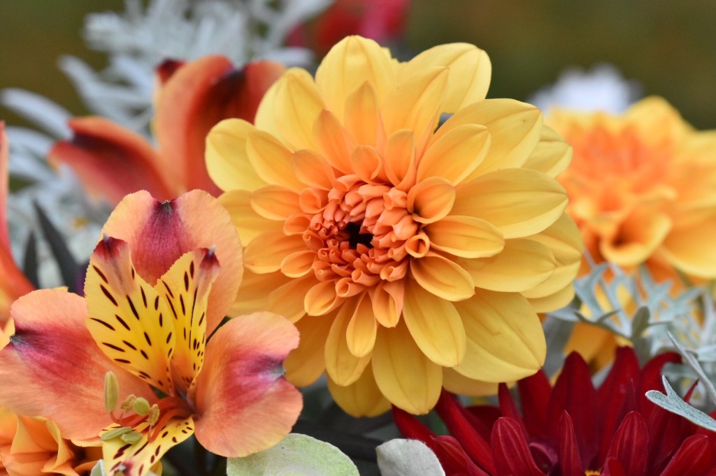 Dahlia David Howard grown with Alstroemeria Indian Summer.
