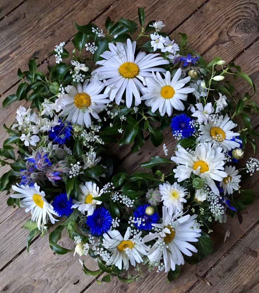 I have a bed 3m long by 1.2m wide with paths surrounding it. Grown from a packet of wild flower seeds (Mr Fothergill’s or Sarah Raven). The plants that emerged included white oxeye daisy, blue cranesbill geranium, pink campion. These come back every year. The grasses grow in a strip along the edge of the lawn. Quaking grass is particularly lovely.