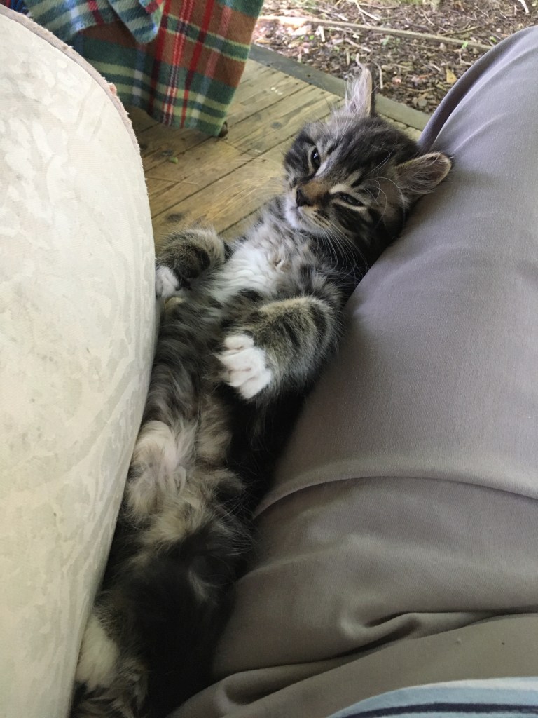 Monty Kitten is more like a dog than a cat. He follows me around the garden and likes to get involved in everything I’m doing. He followed me out onto the grass verge when I put my jam jar flowers out for sale.