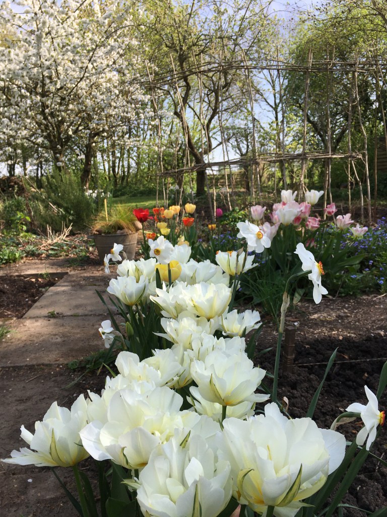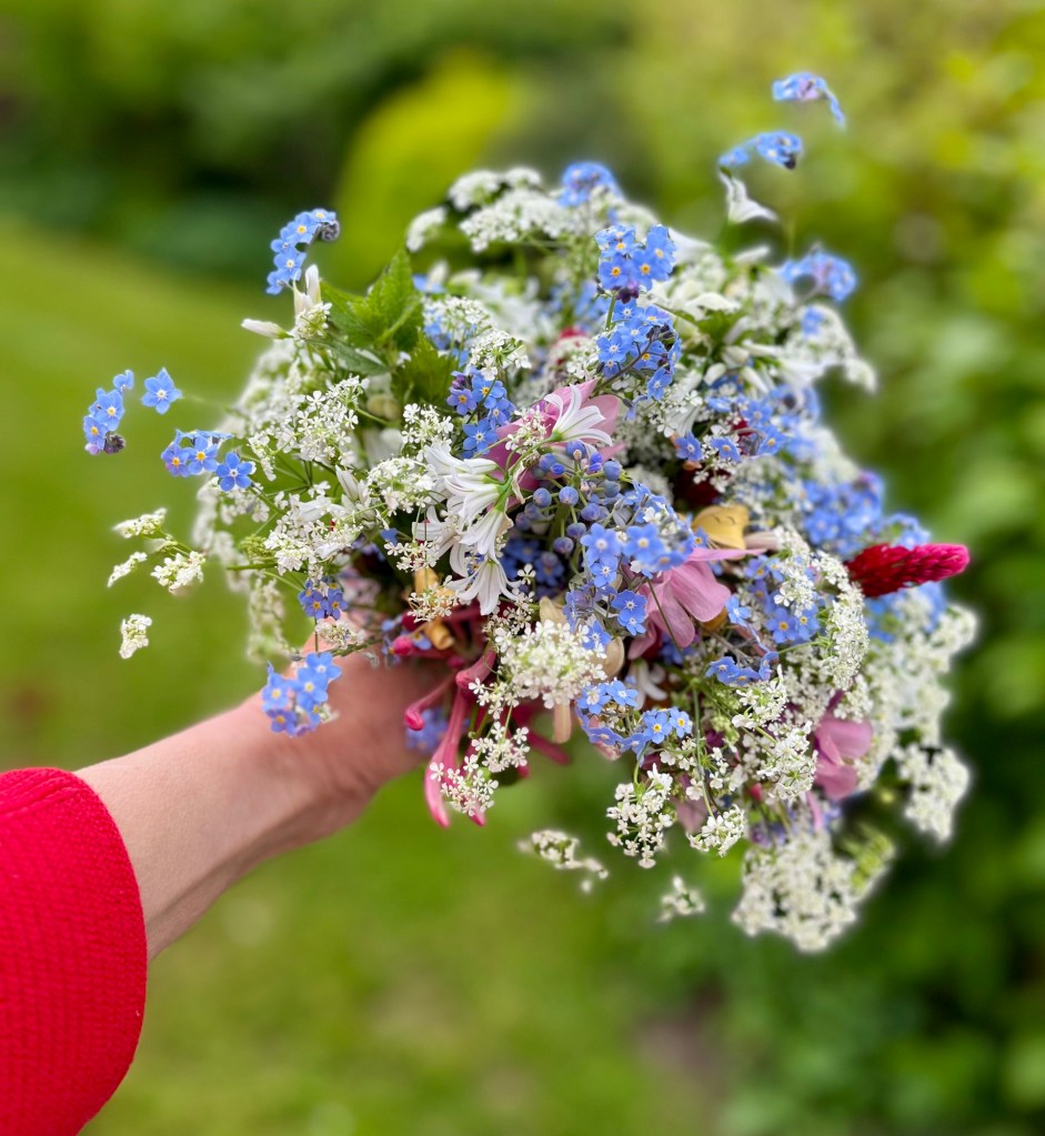 Don’t forget to just look around the garden and use what you have! I have cow parsley, poppies, alliums, Dutch iris, aquilegia and violas just now. Not many flowers are needed to make a jam jar posy. These were not planted specifically for cut flowers, but taking just a few won’t harm the spring display.
