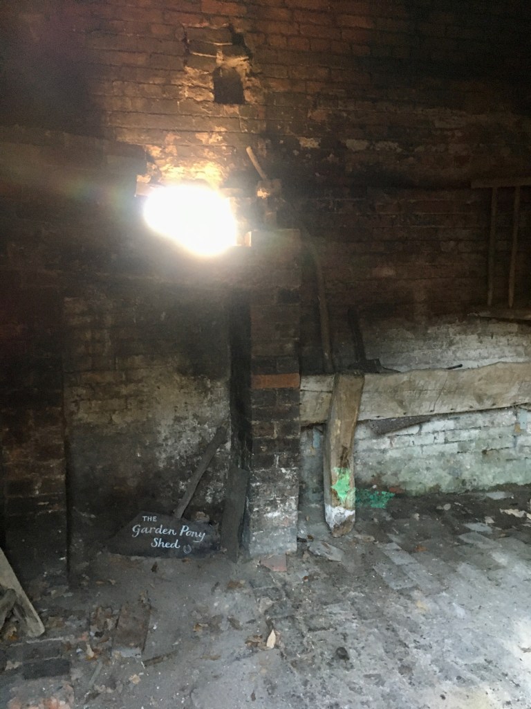 A former Royal Engineer created the shed out of packing crates from an MRI scanner delivered to the centre, and the path though the middle of the garden is made from end blocks of pallets.