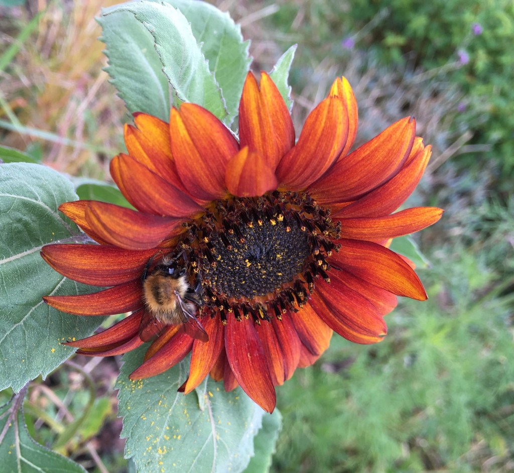 Sunflowers can be sown in April and May. Earth Walker and Velvet Queen are good varieties. Look out for the multi-headed dwarf sunflowers. I grow mine amongst the sweetcorn and the vegetables help to hold the sunflowers upright in stormy weather. Calendulas and courgettes are grown at the base.