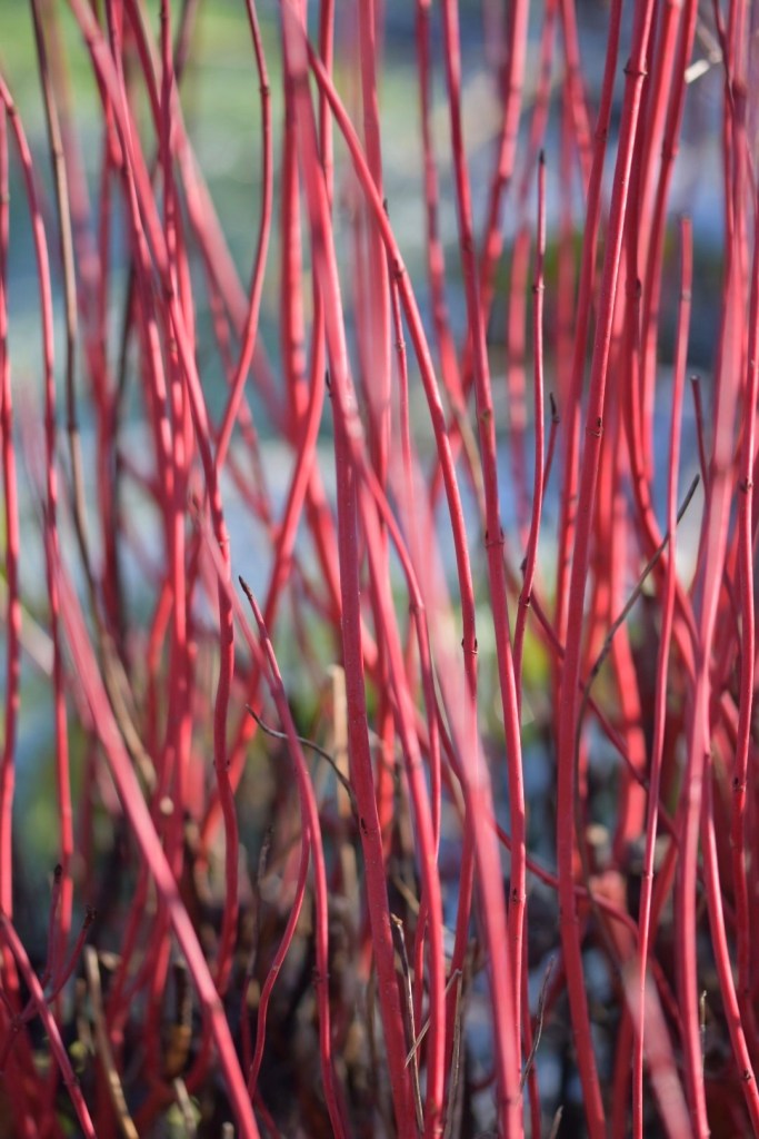 Cornus Westonbirt has the brightest red stems in winter. Only a few stems are needed to add a vertical element to flower arrangements. To get the brightest stems, cut the shrubs back to 20cm in March. New stems will grow back strongly.