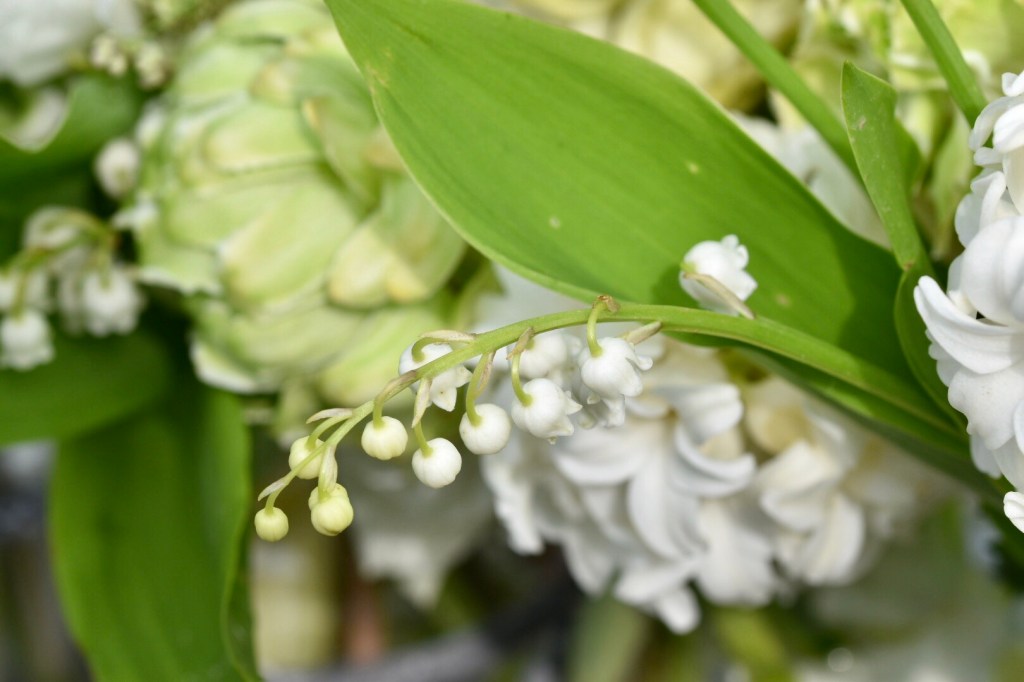 All white theme with Italian ranunculus, cow parsley, hyacinth and Lily of the Valley. Wonderful scent from such a small arrangement.