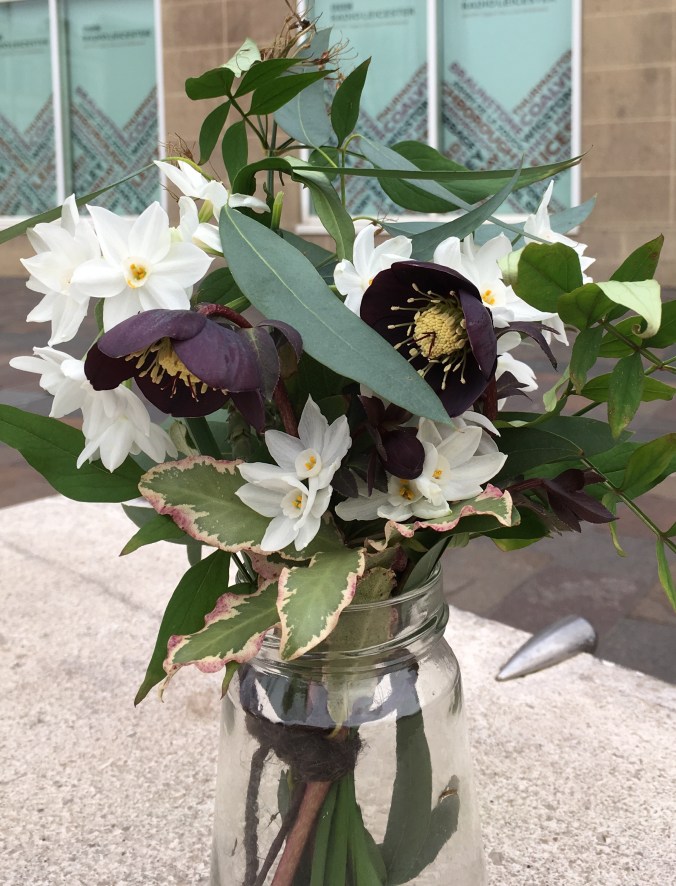 I’ve been going back and forth to the hospice for months, helping the children and young people to grow their own plants for the containers. I loved working with them. I wanted them to share in telling the Rainbows story. Here’s my daughter Clare helping with the planting of seeds and bulbs.