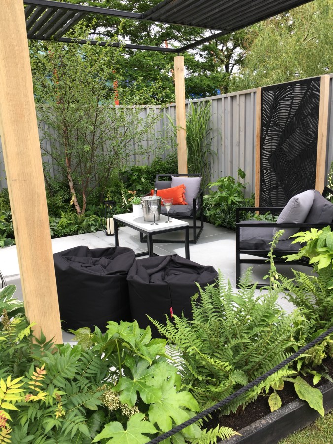 On the other side of the screens is the children’s garden, giving an idea of what it’s like at Rainbows; an insight for anyone who has never visited. There’s a music therapy corner, bird watching hide and wildlife area, water play wall, and a quiet retreat with swing seat covered in rainbow-coloured cushions.