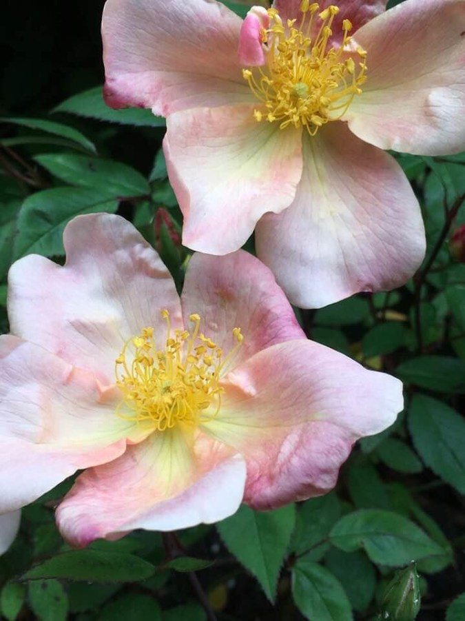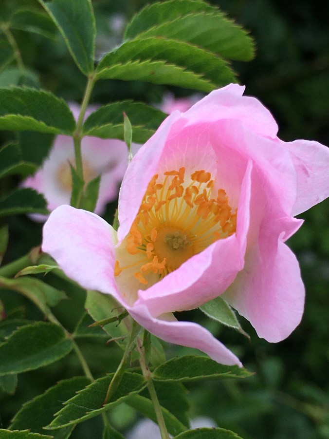 This week, it’s mostly all about roses. As you would expect, wild roses have my heart. The garden is surrounded on two sides by tall hedges. We’ve never pruned them in 30 years. It’s one of those jobs we’ve always put off as being too big to tackle. Secretly, I love the wildness. Who says hedges have to be manicured. Who cares what people think. I love the tangle of honeysuckle and wild dog roses cascading from the top of 30 foot hawthorn. It’s a sight that gladdens my heart. I don’t mind if people assume we are too lazy to keep the hedgerow trimmed. I’ll hold my head up high. I’ve always been rather stubborn, you see. It can be a good thing when life gets tough. I’m quietly determined. I don’t make a big noise, but it’s amazing what can be achieved with calm tenacity.