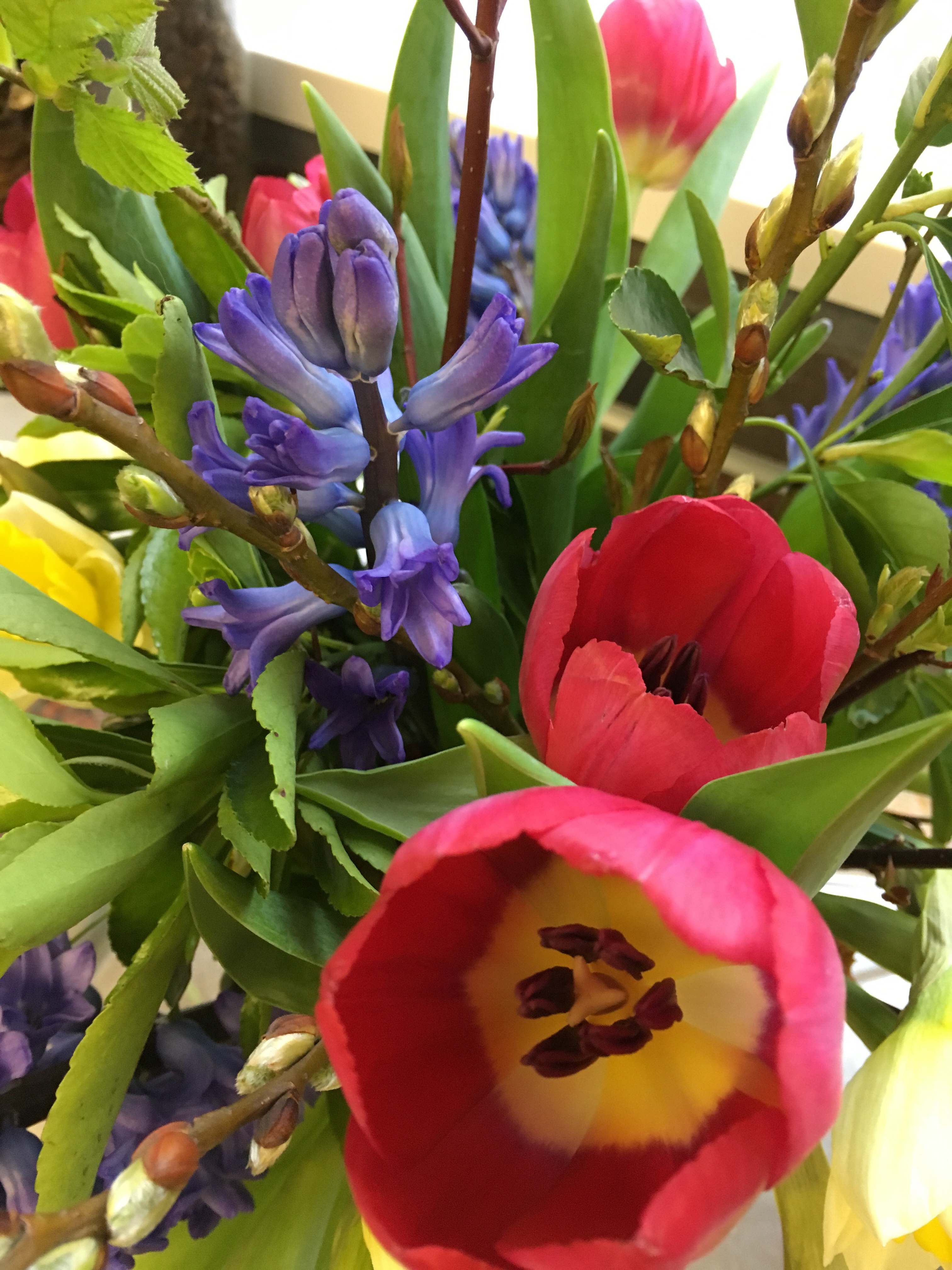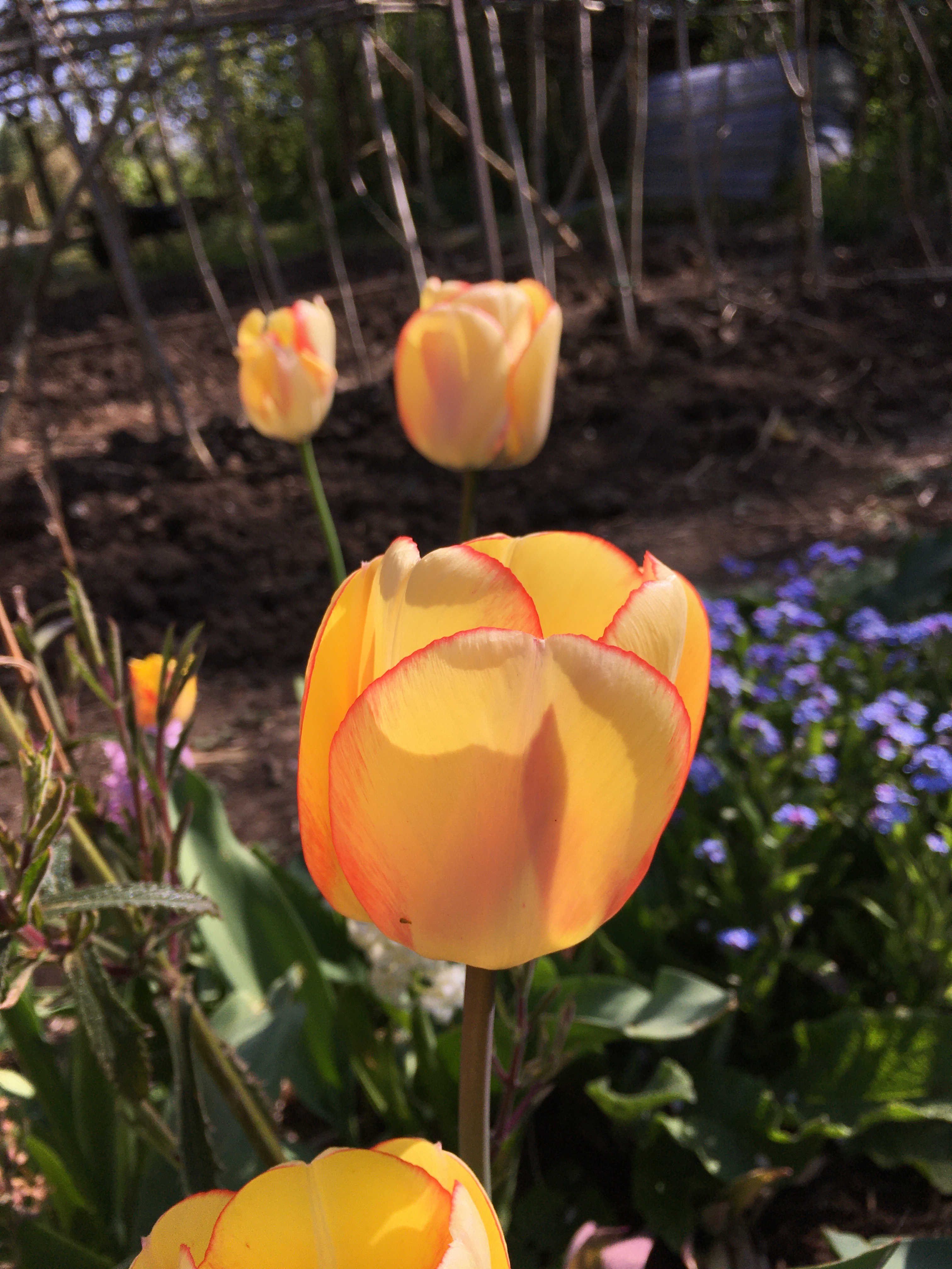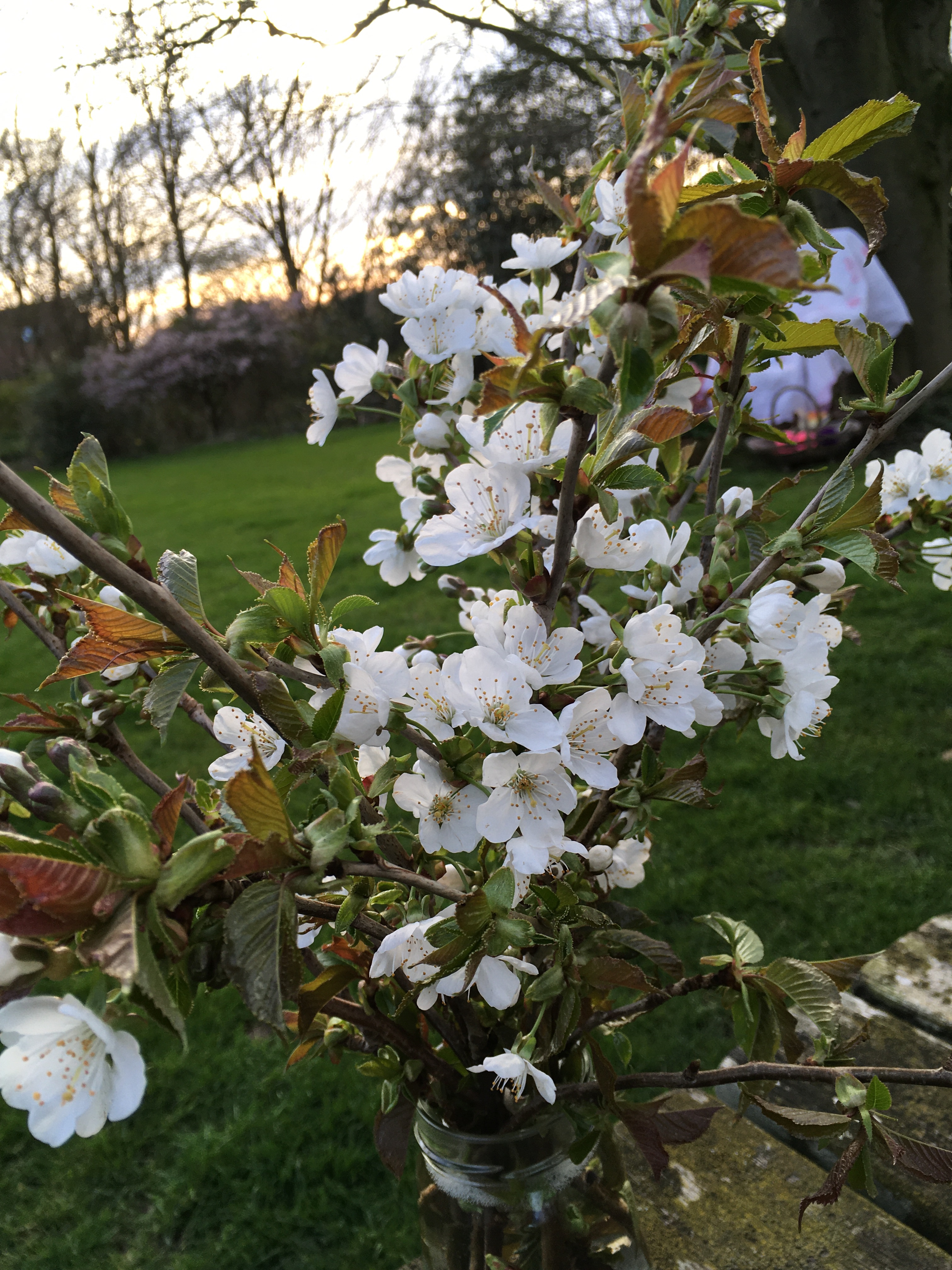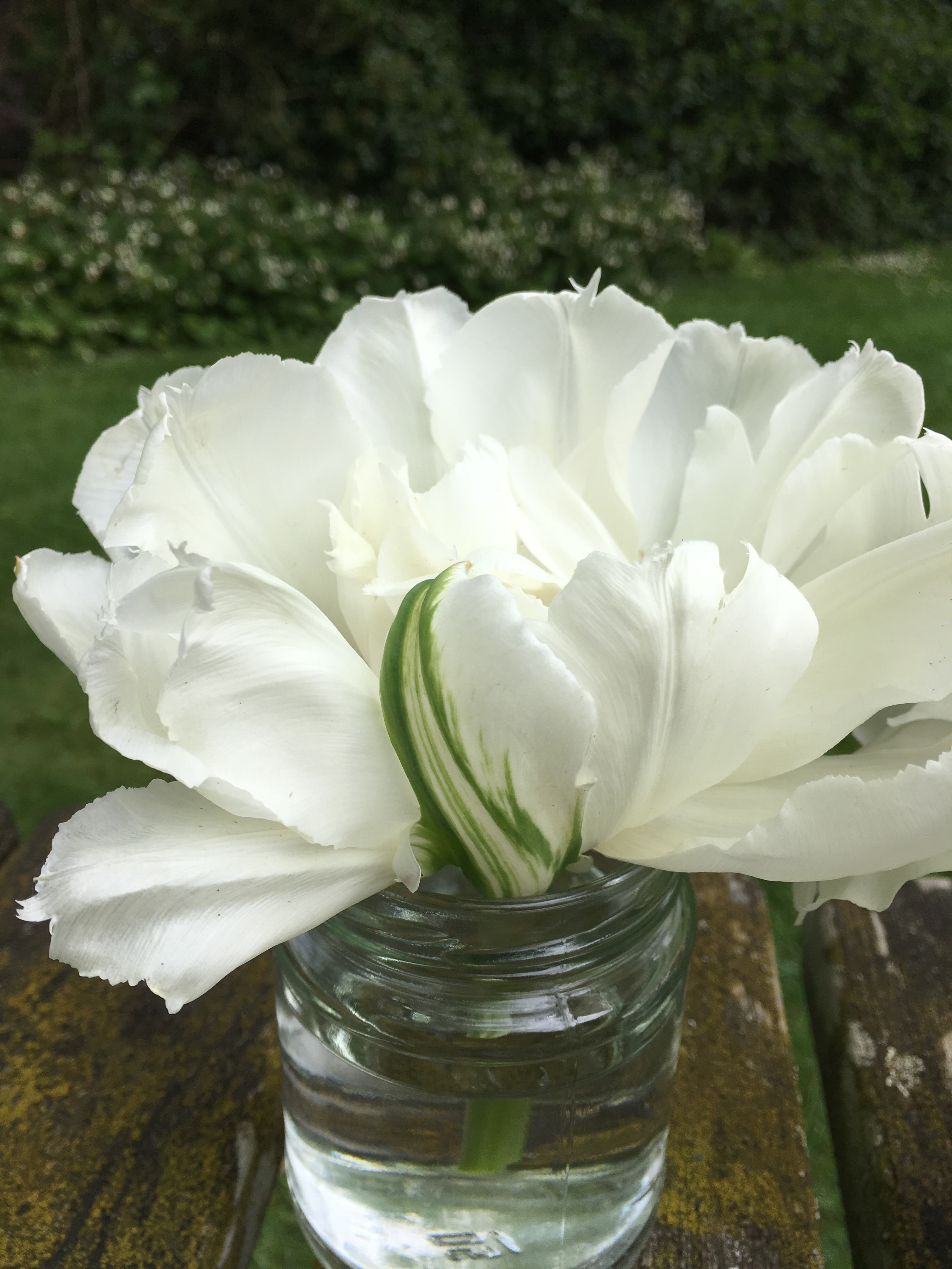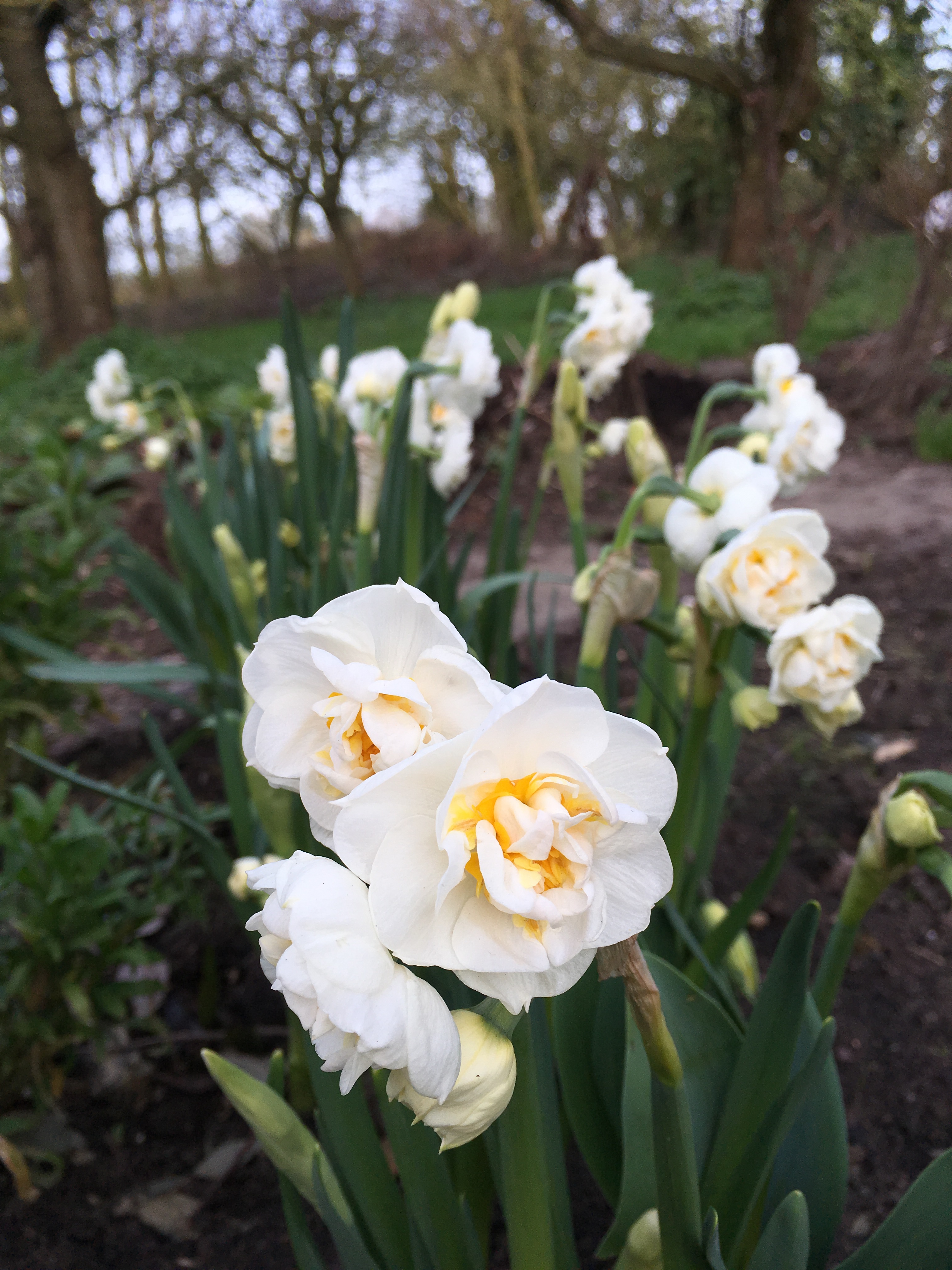My cut flower tulips are in bud. Tulips in the sunny front garden are already flowering early. I’ll cut a huge bunch of daffodils and tulips for the front windows. Vases of flowers will cheer up anyone passing by, even though they can’t call in to visit.