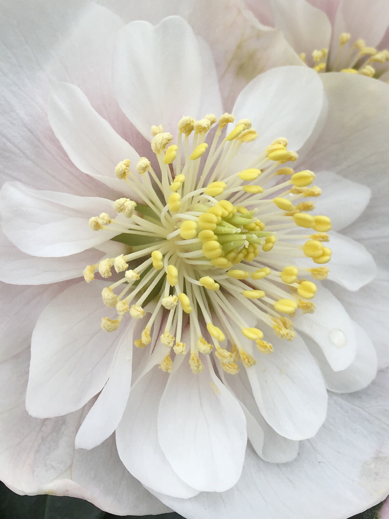 Viburnum Eve Price flowers all winter. It has evergreen leaves and is tough and hardy.