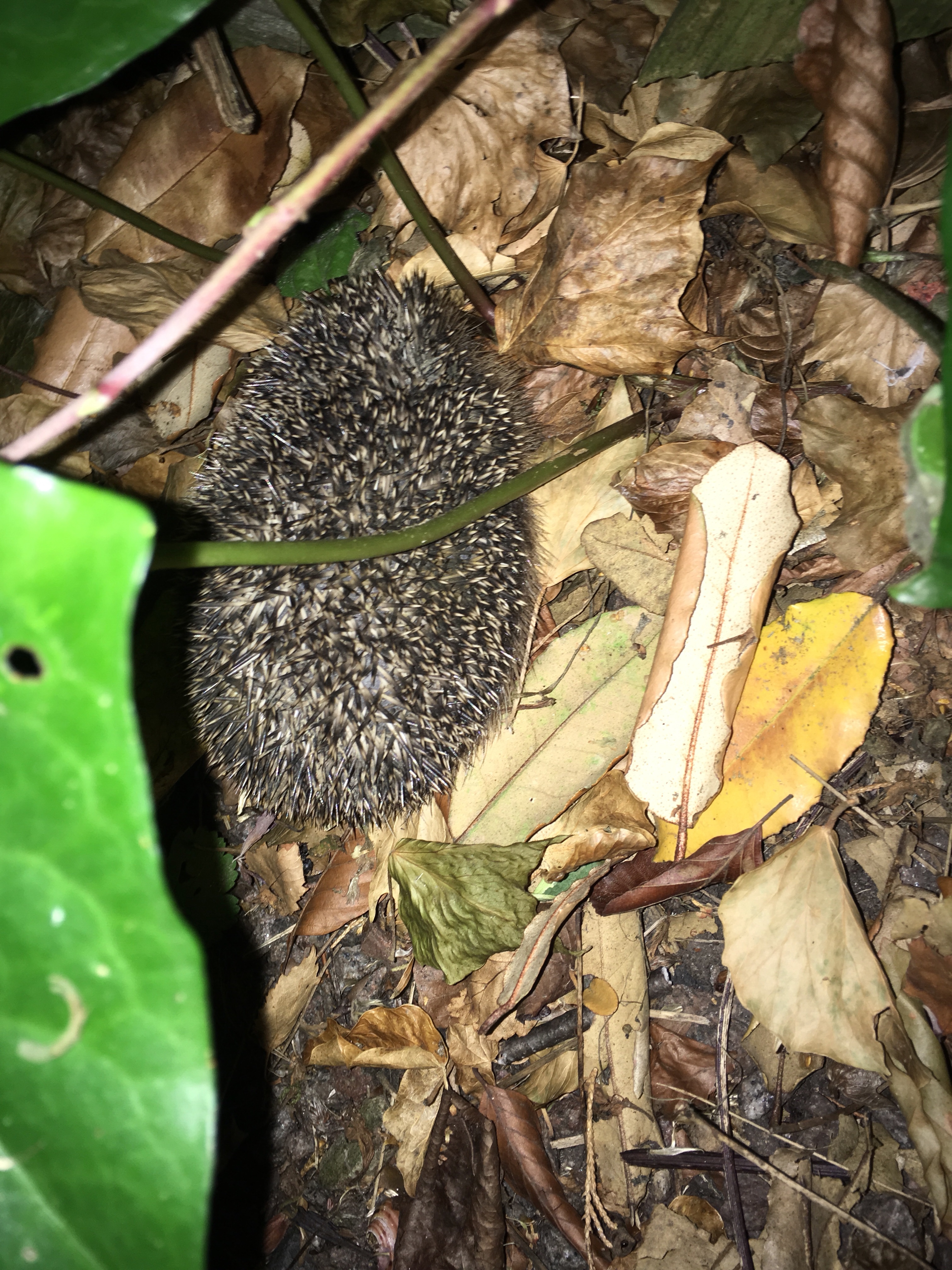 The horseshoe pond can viewed from the potting shed windows. There’s a gently-sloping boulder beach to stand on, and this gives easy access for hedgehogs, frogs, newts and grass snakes. It’s very calming to stand and watch the ripples from raindrops. Today the pond is a cauldron of frogs, mating and producing frog spawn.