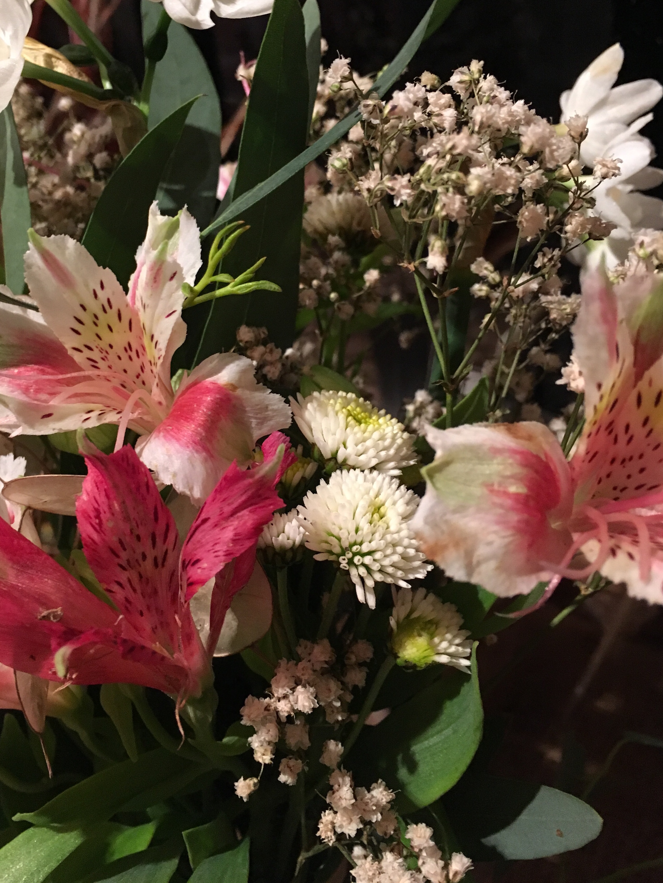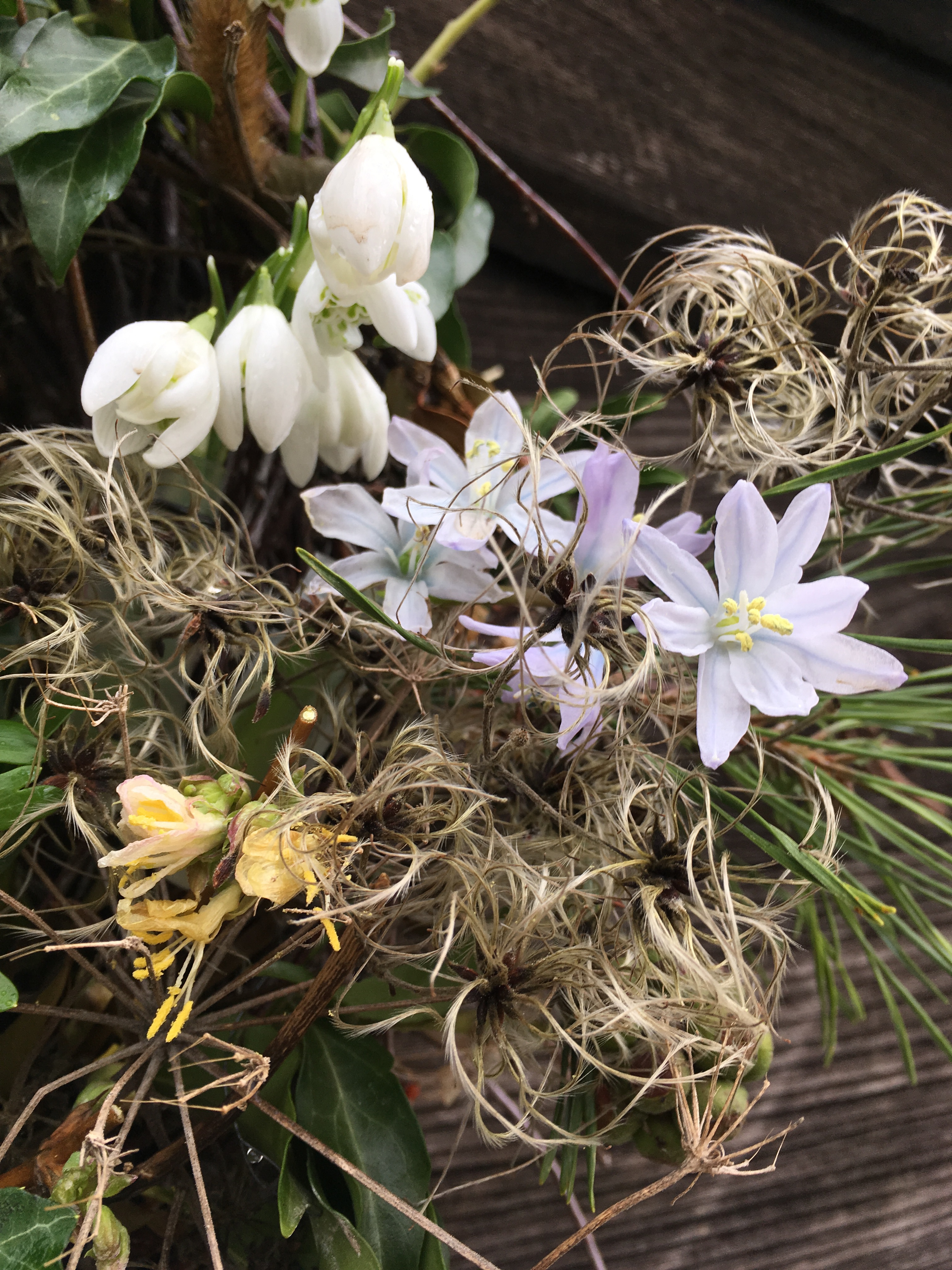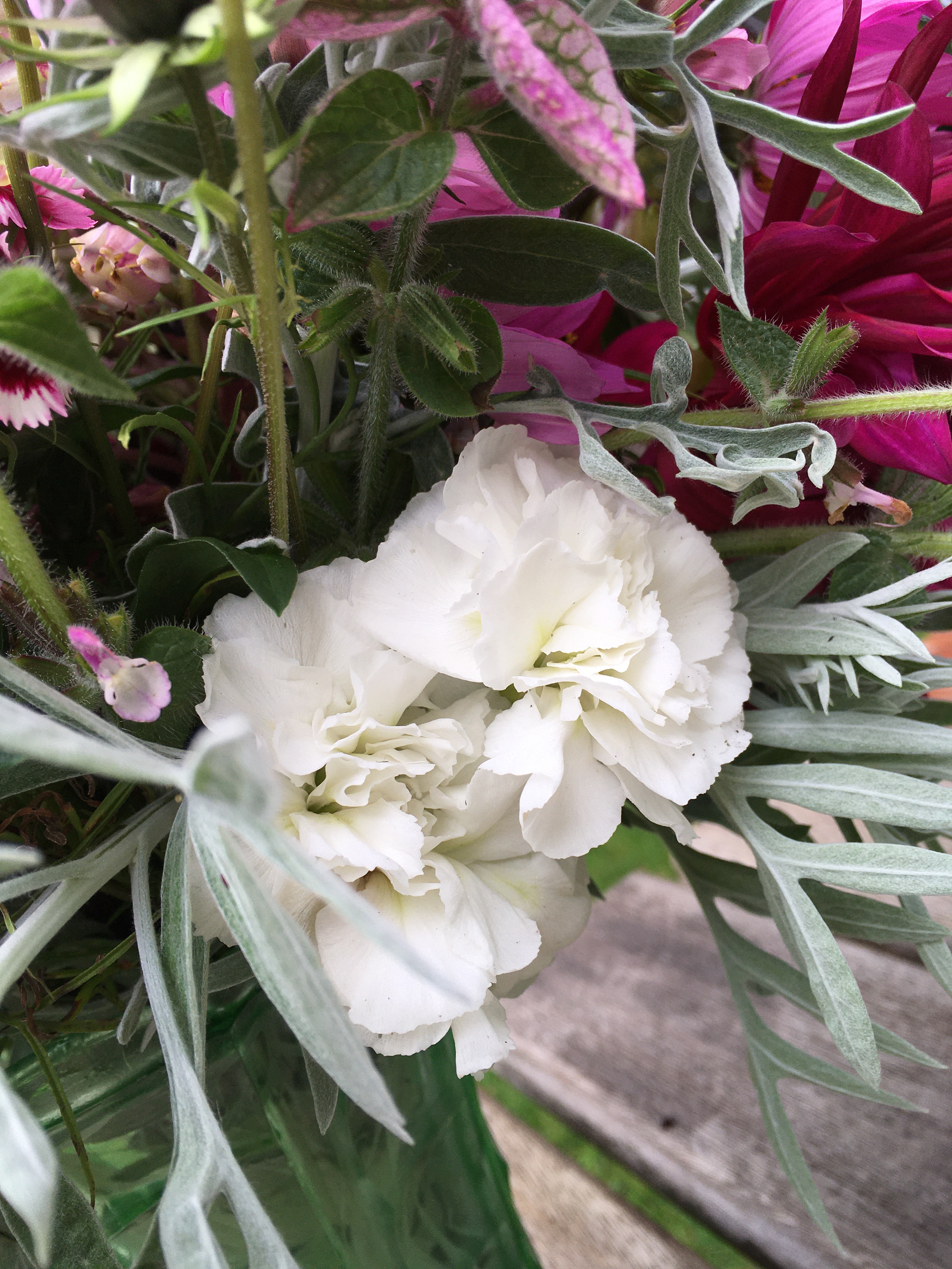 Don’t forget that cow parsley can be used even when the flowers are going over. The little lime green seed heads are still attractive. I also use seed heads of parsnip, onion, carrot, chives, mustard and leeks. I found out by accident by leaving some vegetables to go to seed. I now leave them on purpose to supply free seed heads for floristry. Fluffy clematis seeds are also saved for winter decorations.
