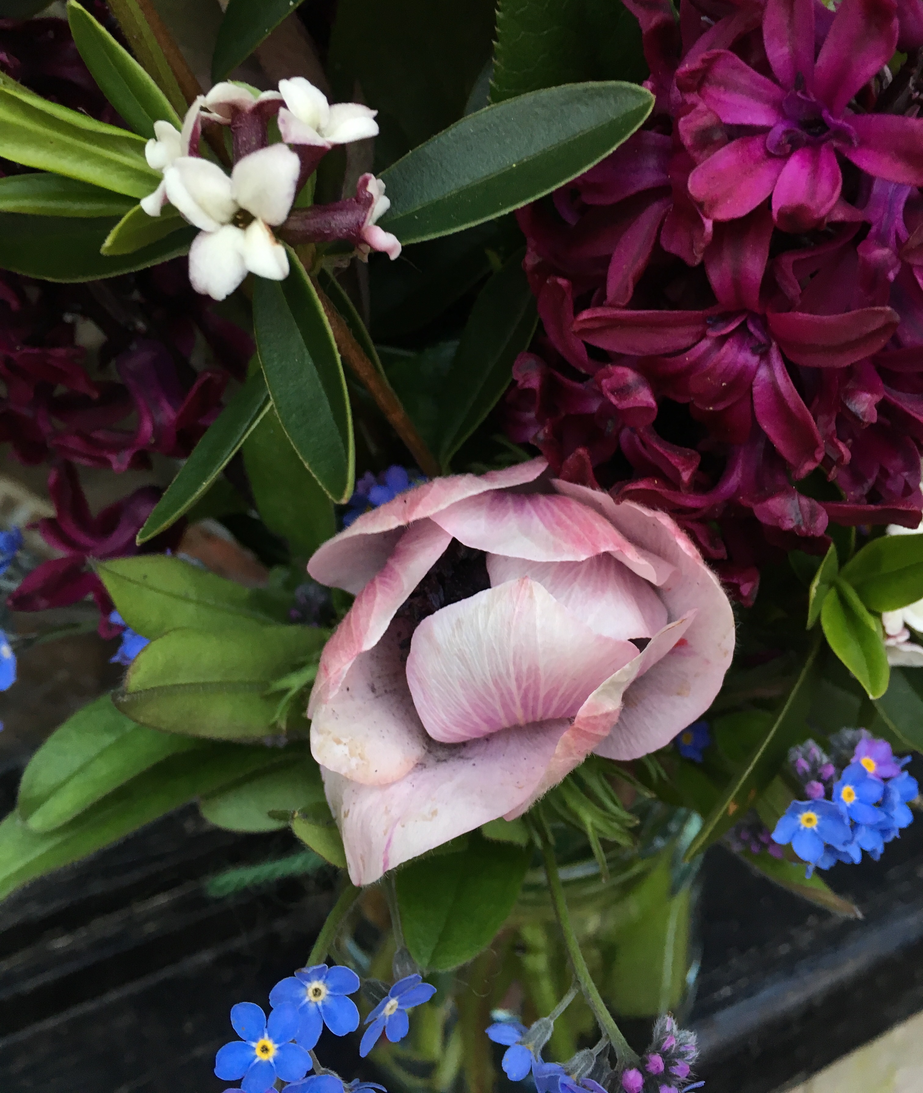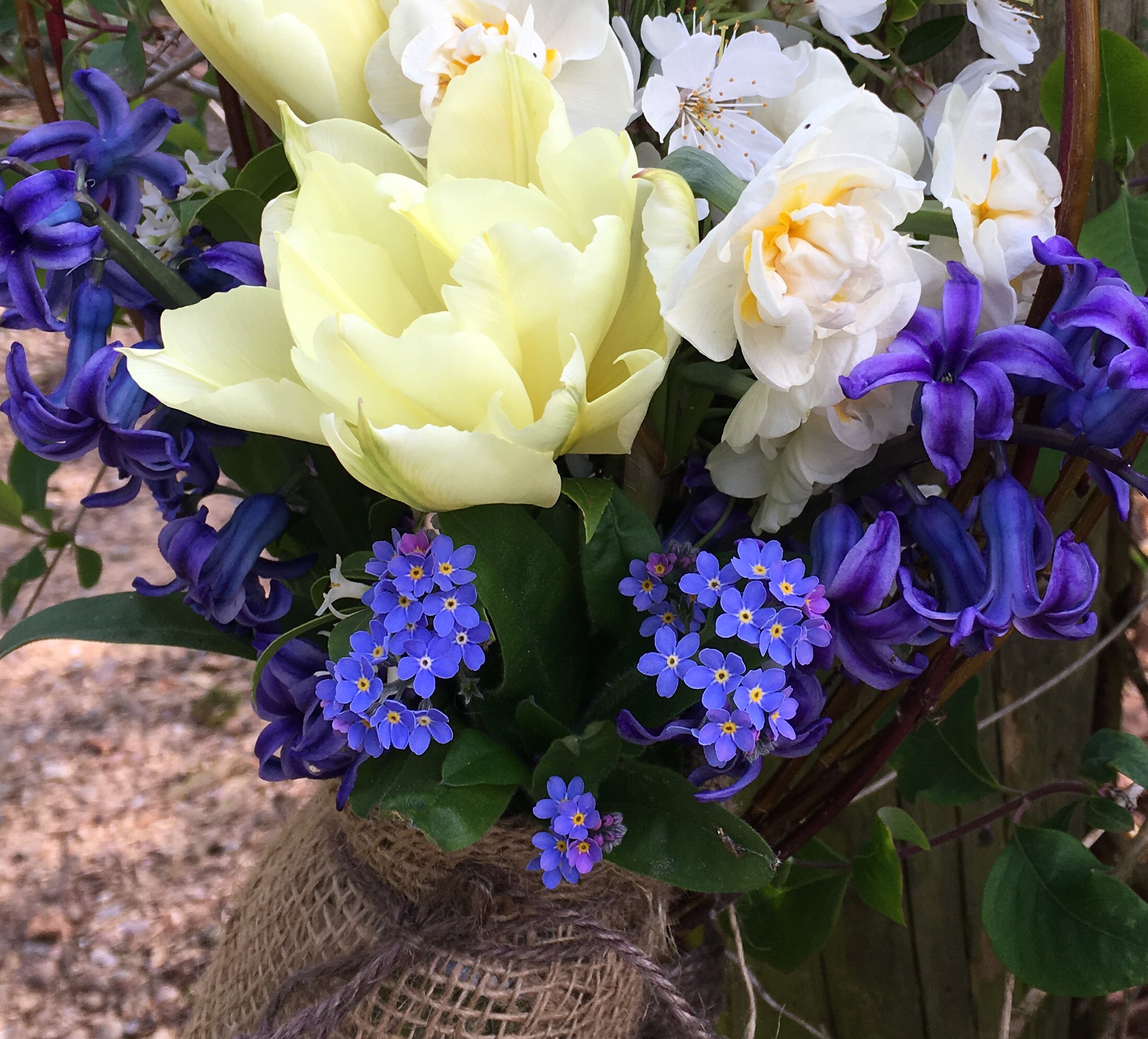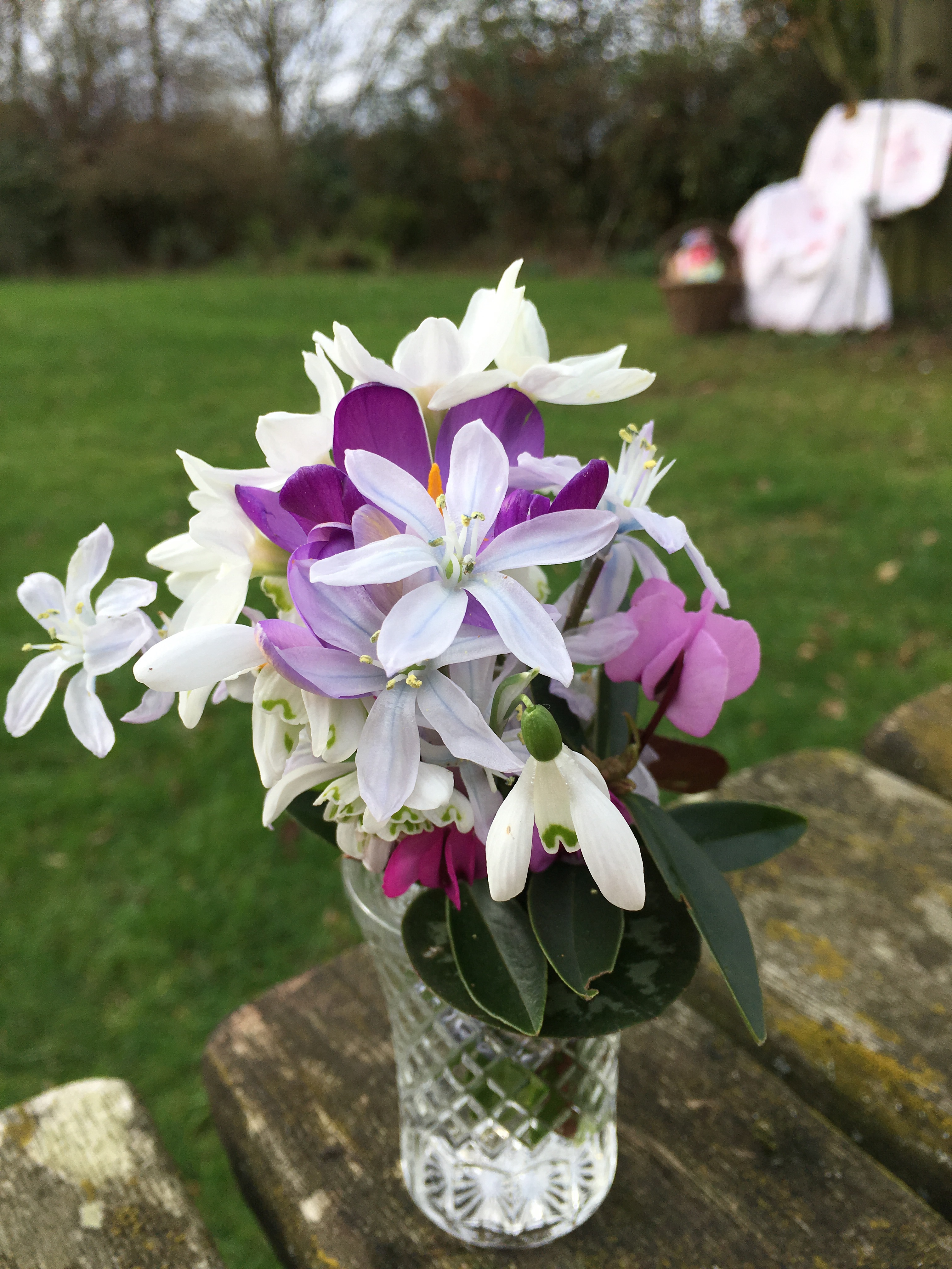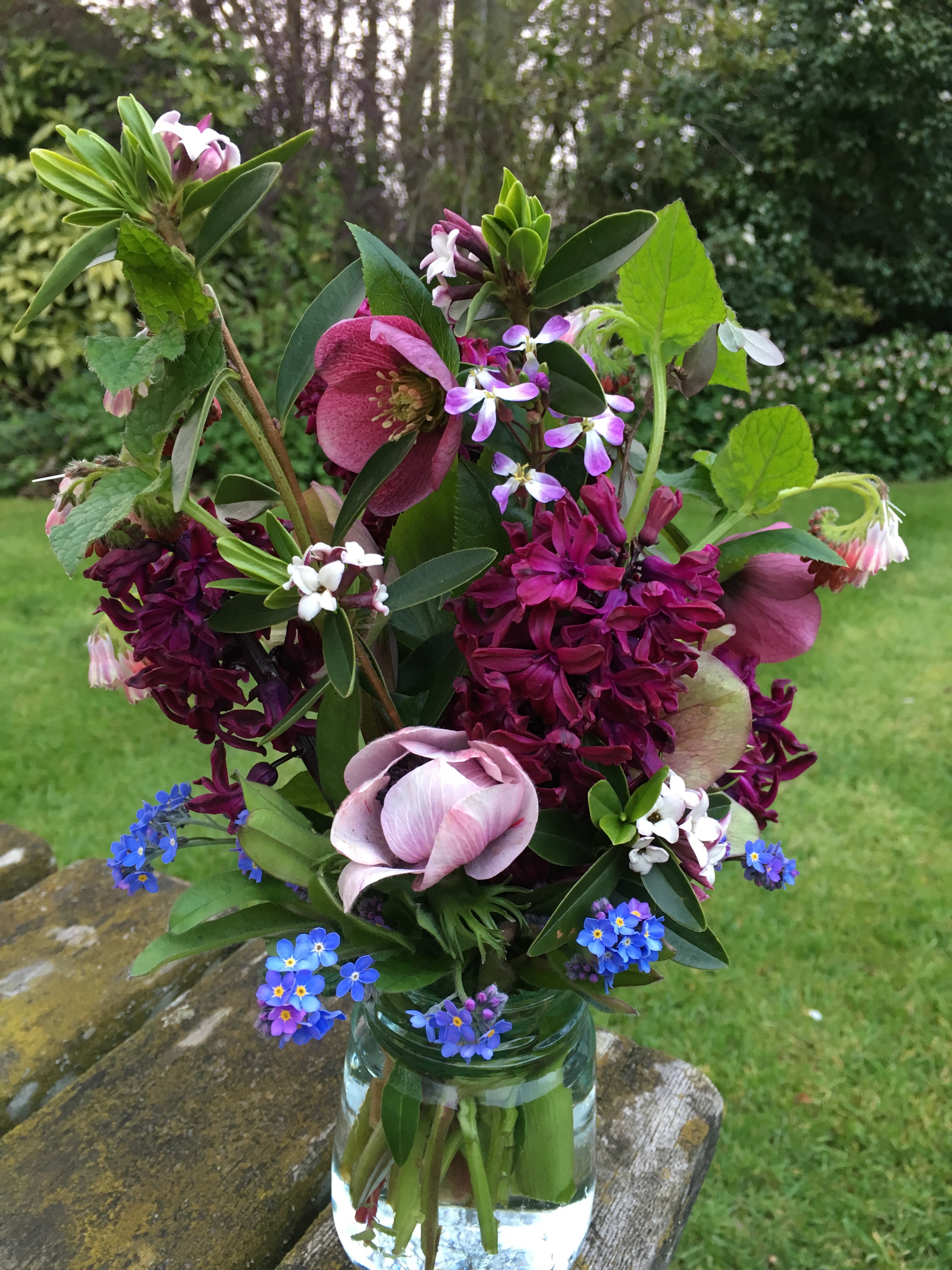 Don’t forget to just look around the garden and use what you have! I have cow parsley, poppies, alliums, Dutch iris, aquilegia and violas just now. Not many flowers are needed to make a jam jar posy. These were not planted specifically for cut flowers, but taking just a few won’t harm the spring display.