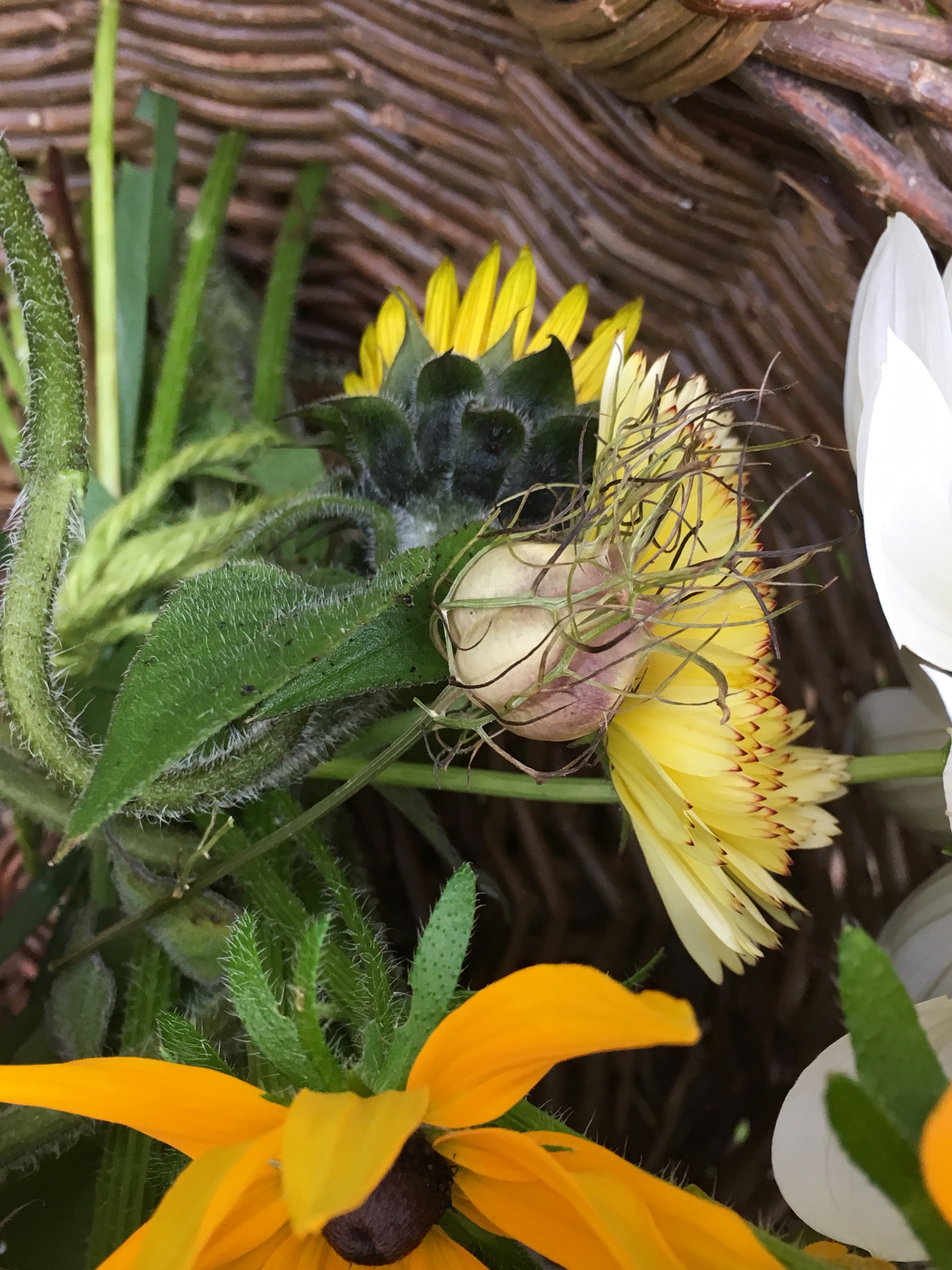 Scent is essential in flower arrangements and Jonathan added white hyacinths into the mix. I grow Carnegie White for my flower posies.