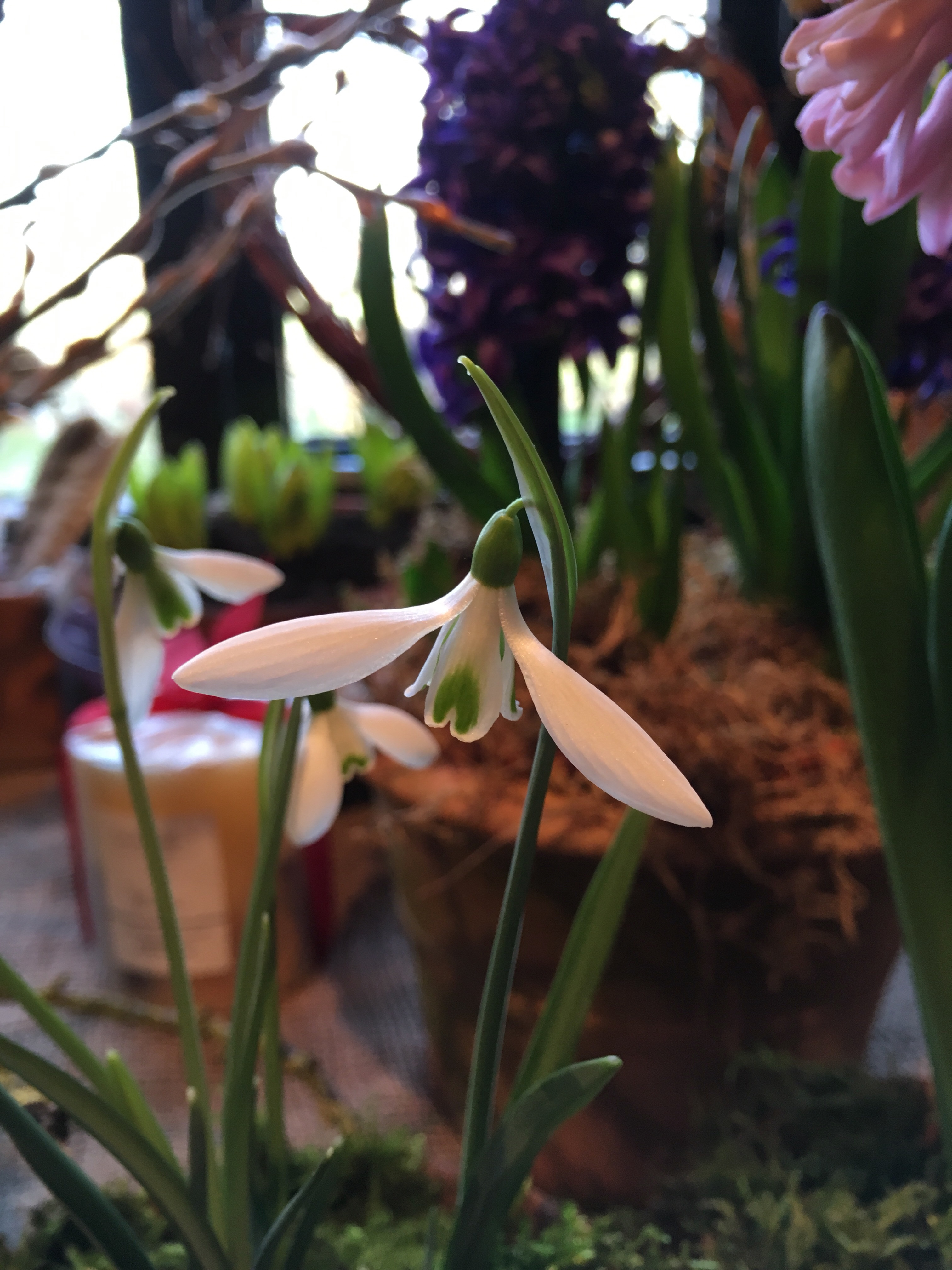My pretty little floral arrangement was a gift from Jonathan Moseley after we worked together at the Belvoir Castle Flower and Garden Show. Jonathan was the celebrity speaker giving talks and demonstrations on floristry, and I was running planting sessions for children. I loved Jonathan’s green and white selection for the little bottles. He chose English anemones and Italian ranunculus. Aren’t they beautiful!