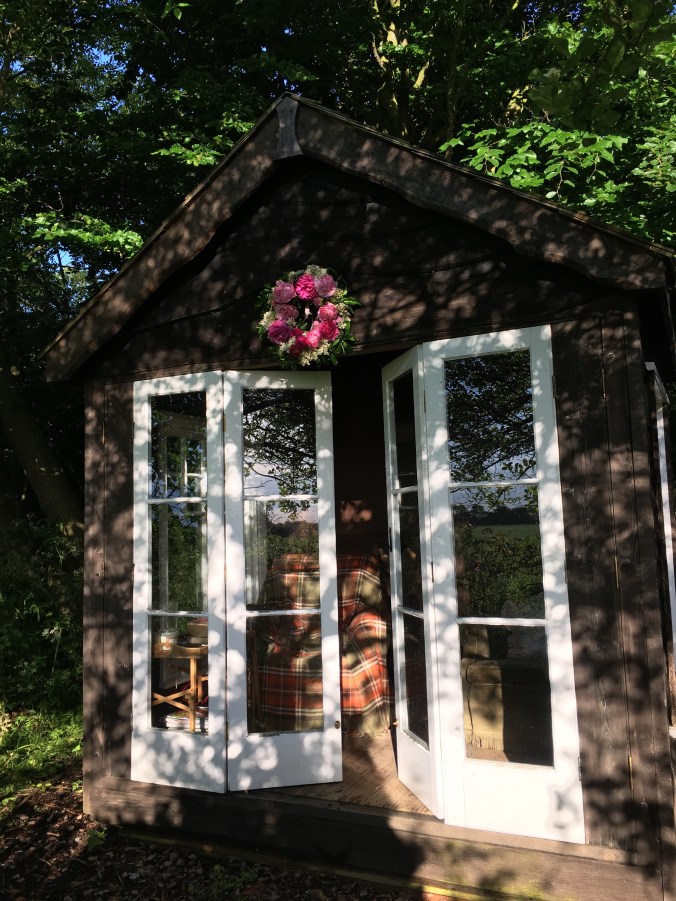 The horseshoe pond can viewed from the potting shed windows. There’s a gently-sloping boulder beach to stand on, and this gives easy access for hedgehogs, frogs, newts and grass snakes. It’s very calming to stand and watch the ripples from raindrops. Today the pond is a cauldron of frogs, mating and producing frog spawn.