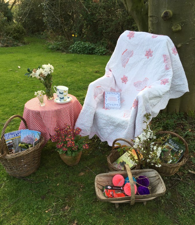 On the first warm, sunny day of the year, I’ve made a comfy place in the garden. I sit here, surrounded by familiar things: flowers, fresh from the garden, favourite books, magazines, tea, and mum’s lemon cake. And for a few minutes, I forget my worries. I am determined to enjoy the garden, birds singing all around, frogspawn in the pond. Trees bursting into leaf. I watch a wren creeping along the eaves of the house, searching for spiders. Spiders webs are used to glue their nests together, so I never clear them away. All of nature carries on, oblivious to the crisis we humans are facing. My small ginger spaniel Meg sleeps at my feet. My cat, Grace, chases a fly. They too are unconcerned. And yet I am a boiling cauldron of concerns. One minute panic stricken by the ‘what ifs’ the next, in warrior mode ready to fight. If only I knew exactly what I’m fighting. I return to voices, advice from my childhood, that some things cannot be changed and what will be, will be. I desperately try to remember comforting phrases from the past. I know my family, going back in time, suffered many illnesses and setbacks and survived. The suffering though. Those photos are etched on my mind. We, in modern times, have had it easy. Until now. And now, none of us know what’s going to happen. To give some respite from my thoughts, I turn to familiar things. For comfort I walk around my garden picking spring flowers, as I have done for the 30 years we’ve lived here. I’m posting them for you to enjoy, hoping they will bring you some comfort too, and for a few moments give you something else to think about. Stay safe all of you and keep in touch. Our gardens and our gardening community have never been needed more than they are today.