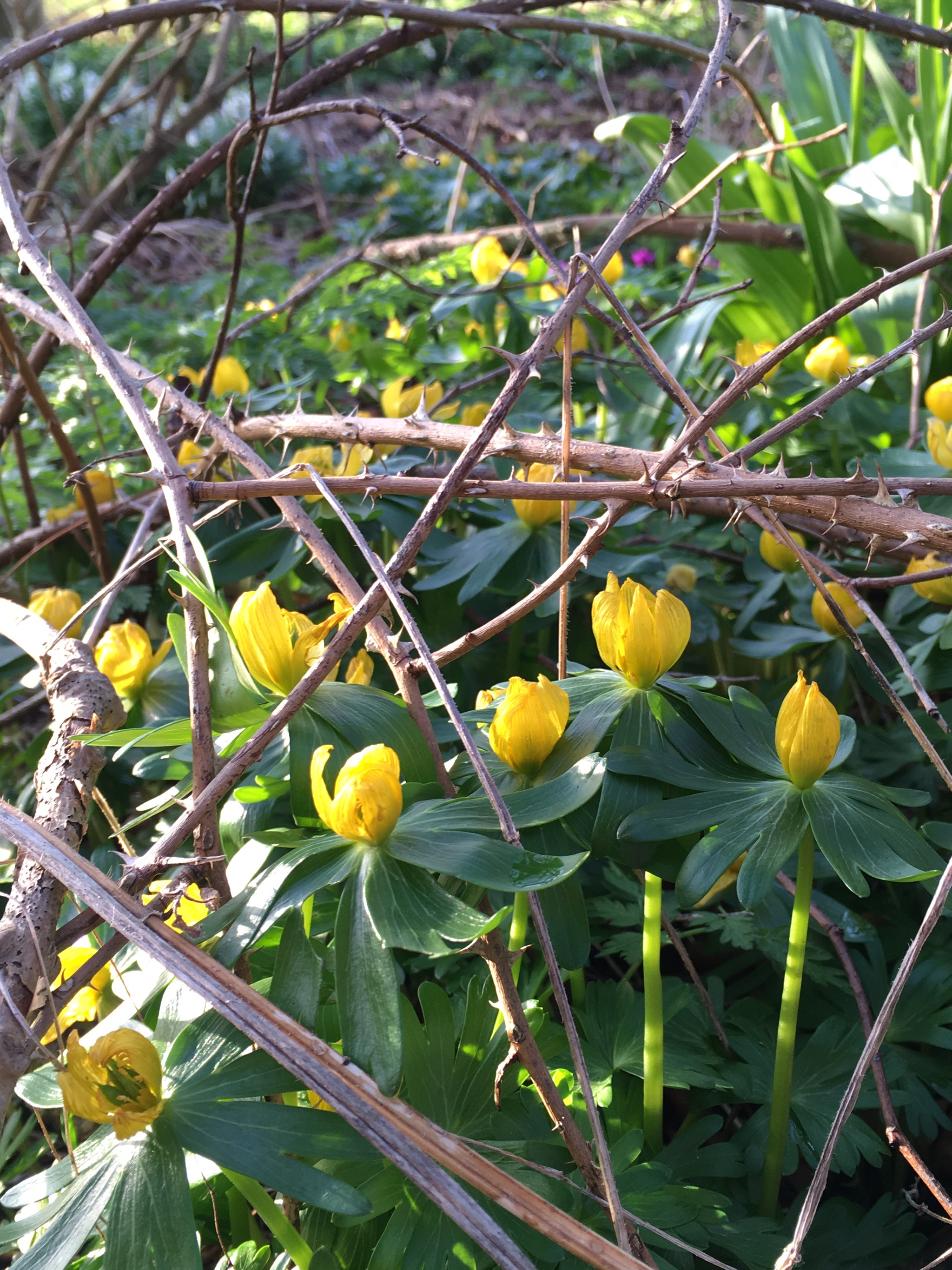 Finally, the yellow aconites have got going. I’ve been trying for years to get these to grow. They love a good mulch of leaf mould.