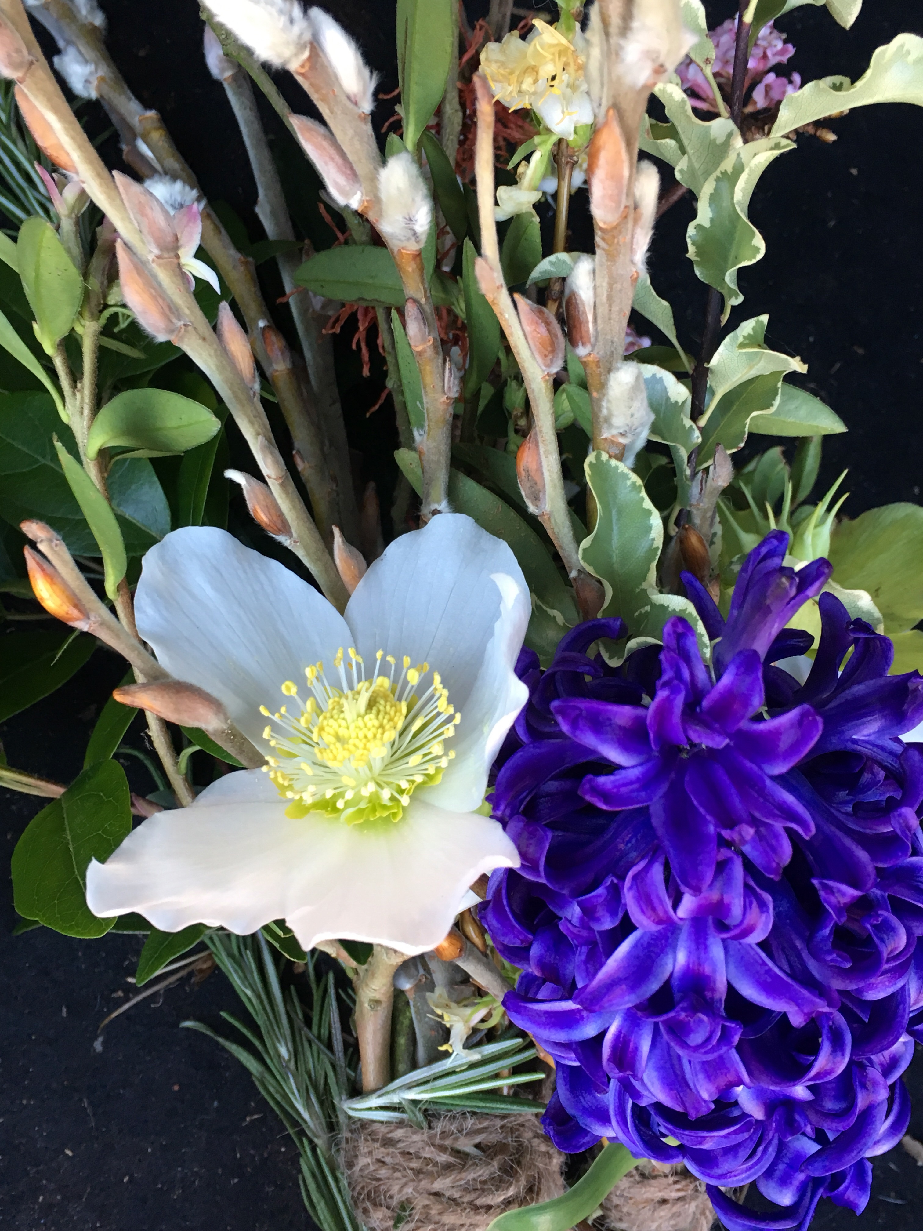 Here’s another tiny posy with snowdrops, crocus, cyclamen and a blue flower I think is called squill. Perhaps you know it? There’s an amazing strong scent for such a small arrangement in a tiny glass vase. Winter flowers are often beautifully-scented as they have to work hard to attract the few pollinators that are about.