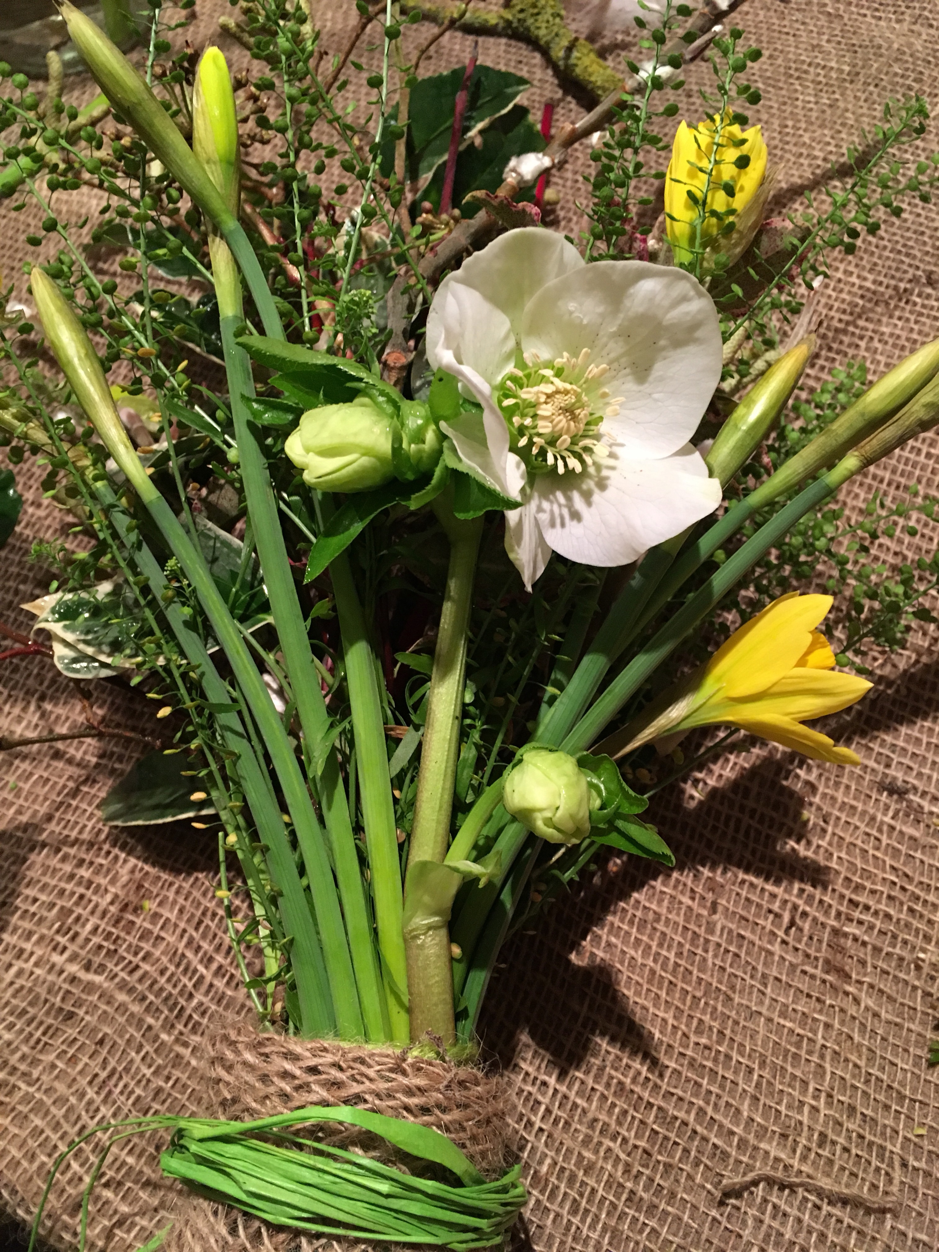 Snowdrops and miniature daffodils make a lovely button hole posy. These ones were put onto a willow wreath for my summerhouse.