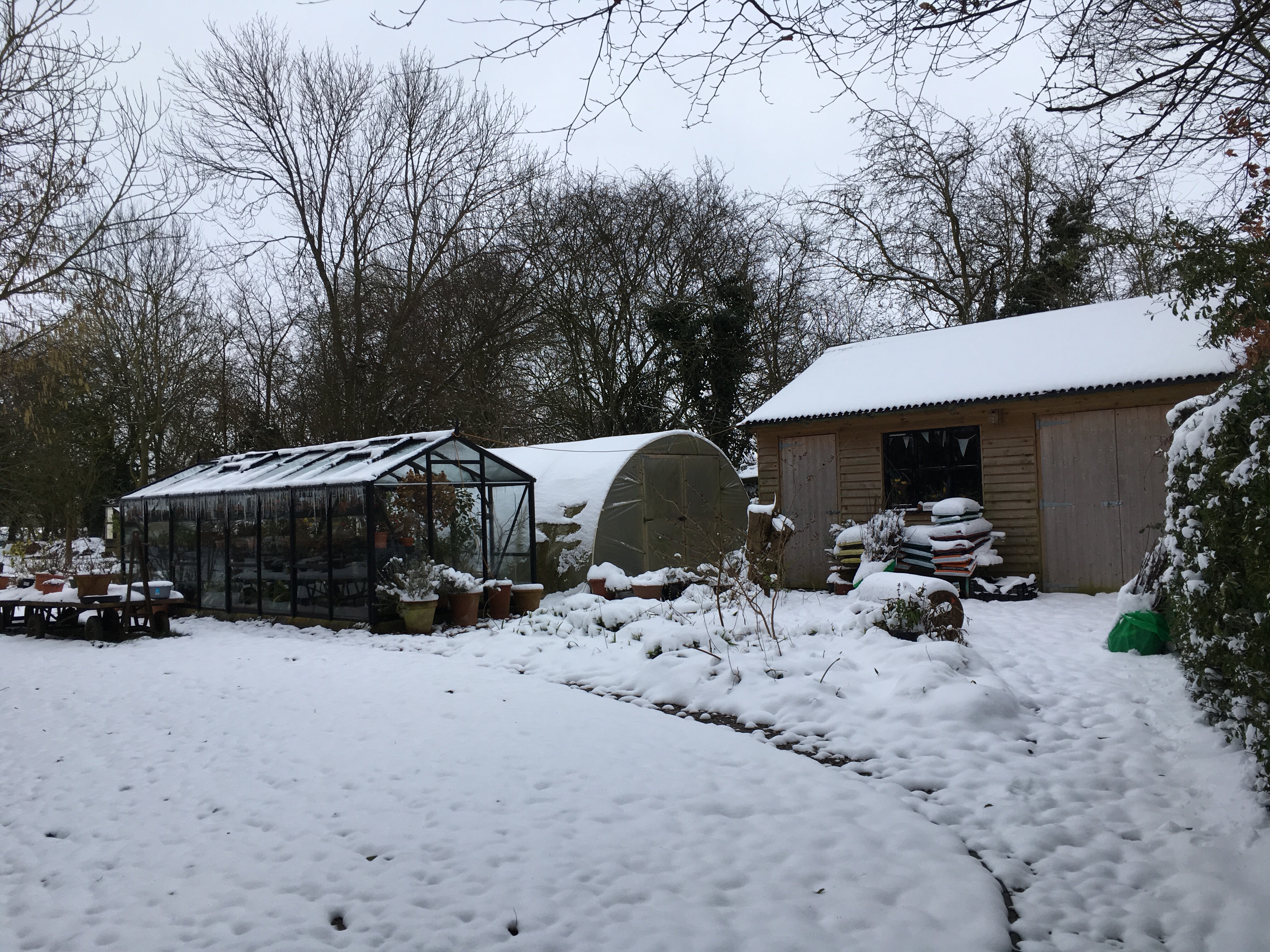 I map the progress of winter through the pottingshed windows, watching the angle of the sunlight as it hits the huge table where I work.
