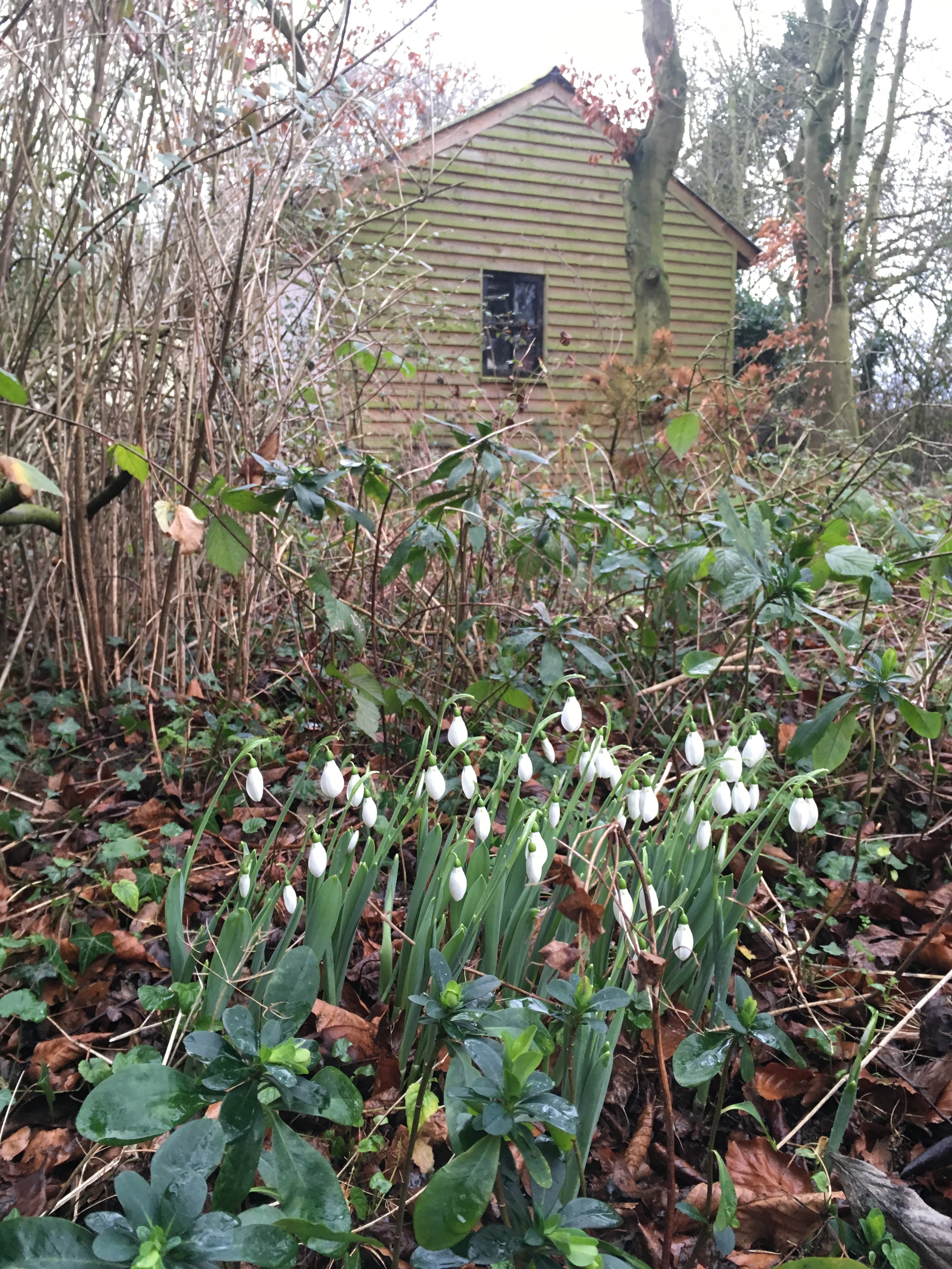 I was lucky enough to get a chance to wander about Rachel’s garden while foraging for foliage for my Christmas wreath, and there under the huge, hundred year old trees, I spotted masses of little green shoots. Rachel had no idea the snowdrops were there when she bought the house- it was a glorious and very welcome surprise when drifts of them emerged.