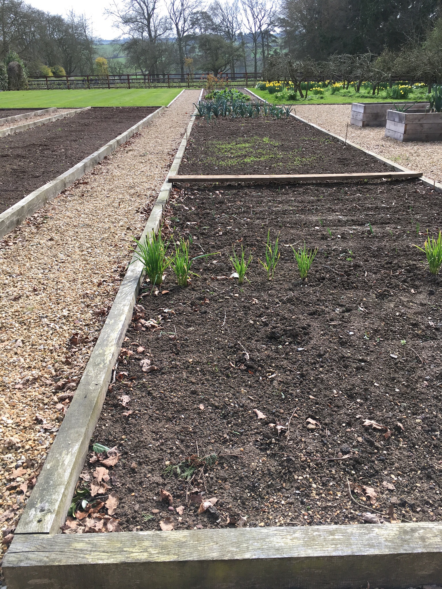 Daffodils have naturalised in the grass around the magnolia, cherry and lime trees. Backed by a south facing wall, there’s a new kitchen garden with raised beds and a new Hartley Botanic greenhouse.