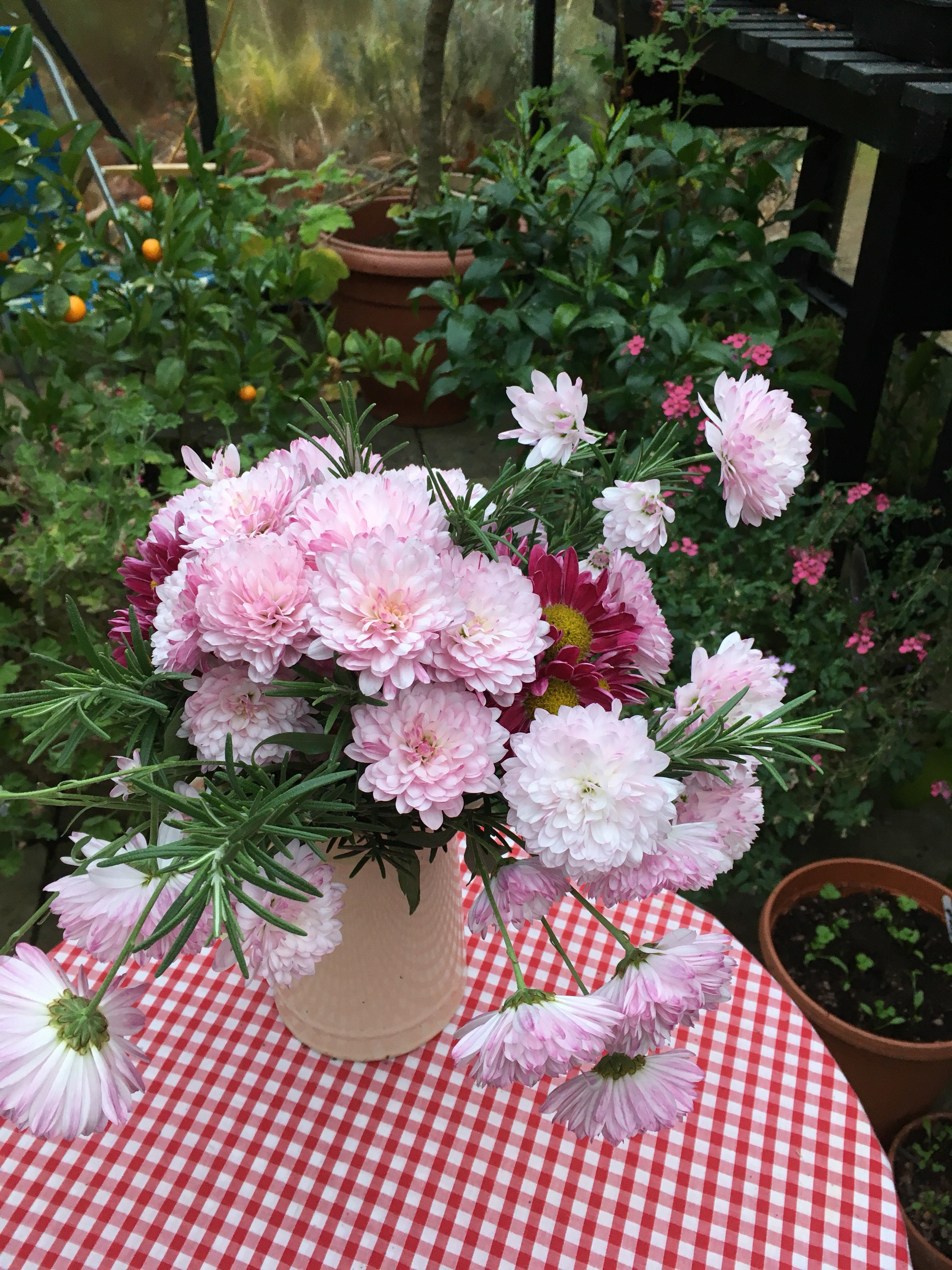 On the other side of the potting shed is the renovated orangery containing many exotic plants including this white datura known as angels trumpets. It has a fabulous scent, but is very highly poisonous so I won’t grow it now.