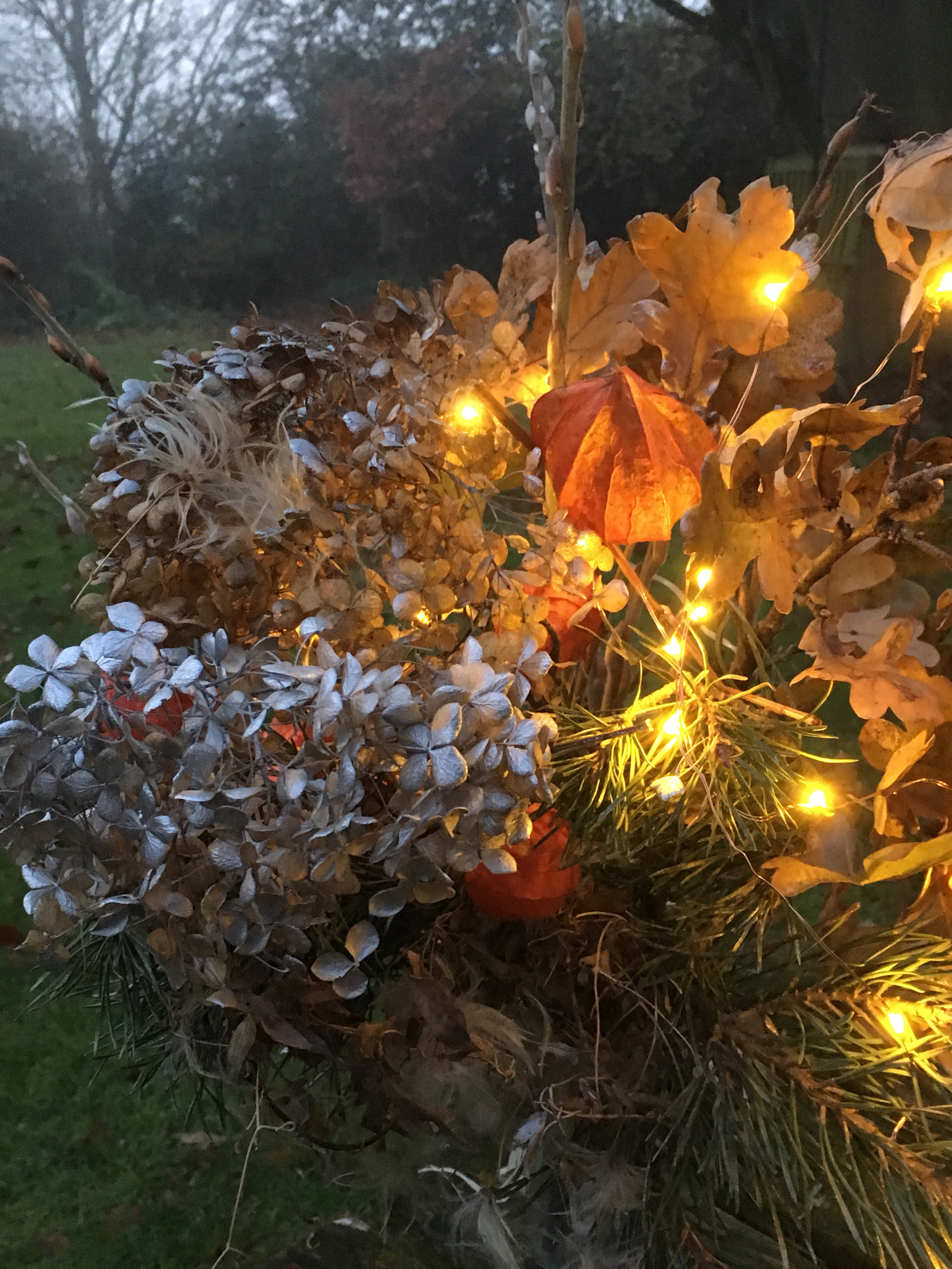 This is a tradition we started some years ago and it’s one I look forward to each year. We love the decorations in the walled kitchen gardens. This ‘kissing bough’ caught our attention. Isn’t it beautifully-made with natural materials gathered from the grounds.